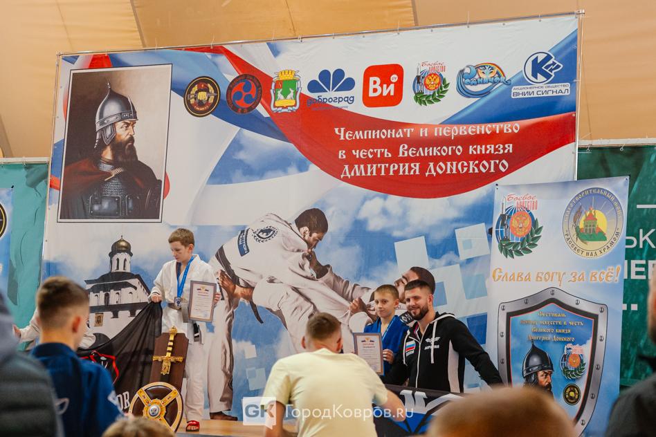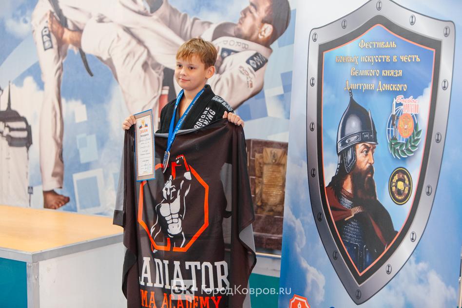 Главный кубок фестиваля боевых искусств в честь Великого князя Дмитрия Донского. Он с этого года станет переходящим. Вручаться он будет команде, которая по совокупности показала максимальный результат. На протяжении года Кубок будет храниться у команды, которая привезёт его вновь на следующий фестиваль, чтобы вновь побороться за право хранить его у себя. Если какая-то из команд превзойдёт по результатам, значит Кубок отправиться к новому победителю. Мне очень приятно, что в этом году Кубок остался в Коврове, он по итогам всех выступлений вручён представителям джиу-джитсу из спортивного клуба «Гладиатор».