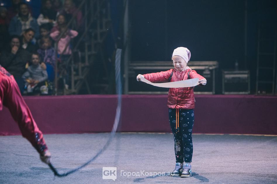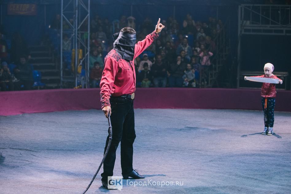 Когда дело дошло до интерактива, многие зрители затаили дыхание. Ребёнку-добровольцу из зала предлагалось держать на вытянутых руках бумажную ленту, которую артист разрывал кнутом. Пацан отказался, почувствовал страх, а маленькая девчонка согласилась. Её папа из зрительского сектора дал добро, но всё то время, что девочка стояла на арене, заворожённо следил за происходившим. Разумеется, хэппи-энд!