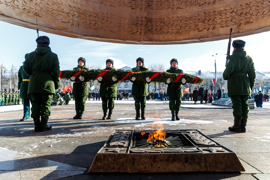 Сегодня, 23 февраля, на площади Победы состоялся торжественный митинг, посвящённый Дню защитника Отечества и 50-летию зажжения «Вечного огня».