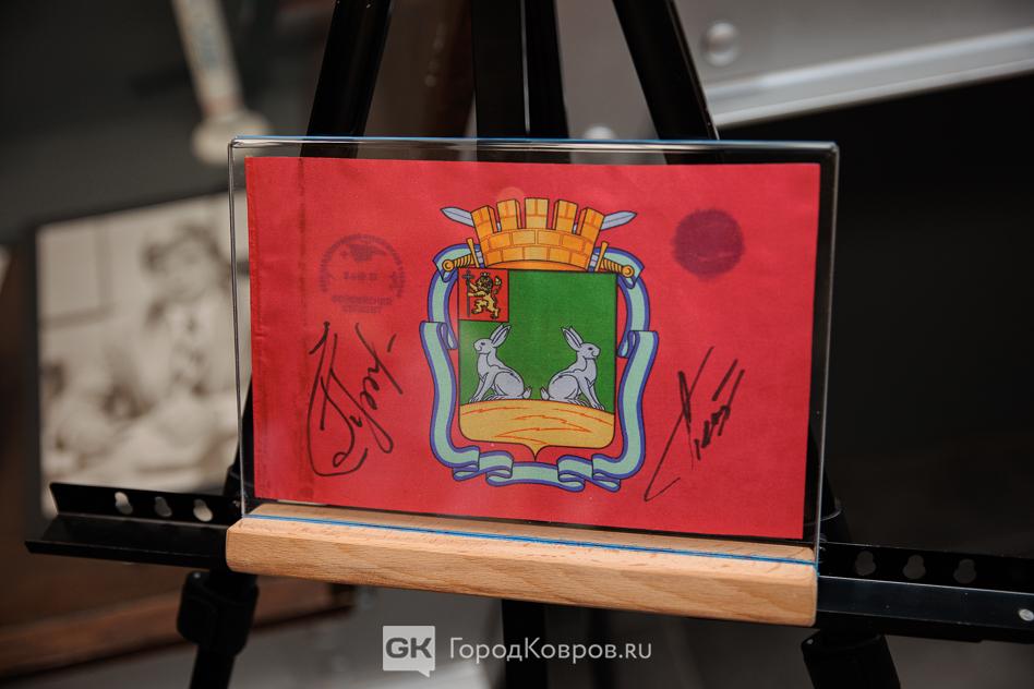 Представители КБ «Арматура» обеспечили доставку флага при содействии спикера горсовета Анатолия Зотова осенью 2023 года. Также участвовал вице-спикер Сергей Кашицын. Флаг 12 апреля 2024 года вернулся в Ковров и стал инфоповодом мероприятия в музее.