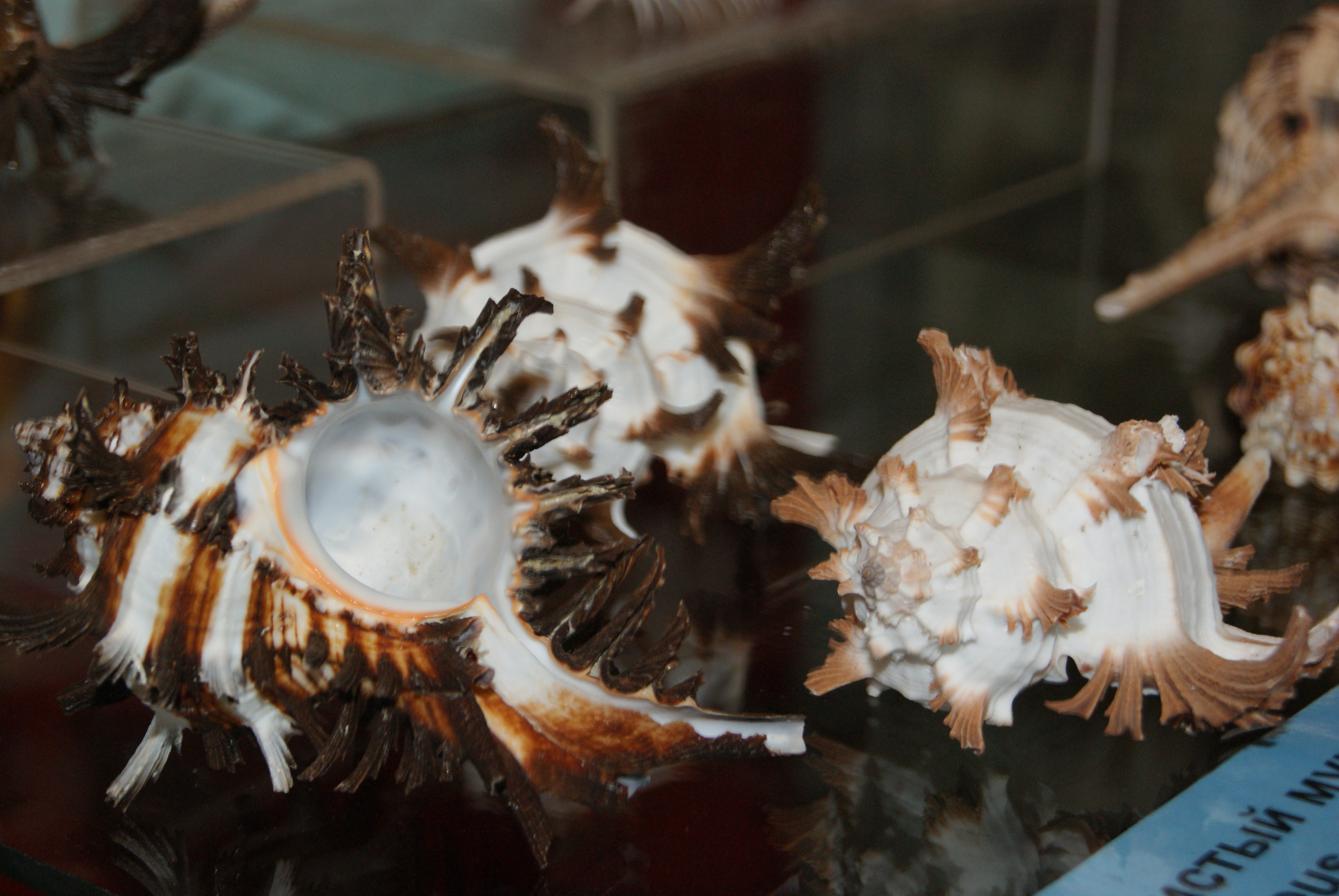Украшение выставки — улитка «Рог тритона» — самая знаменитая раковина в истории человечества. Кроме того, что ее действительно можно использовать в качестве сигнального рога, она еще и играет важную в поддержании экологического равновесия в жизни рифа.