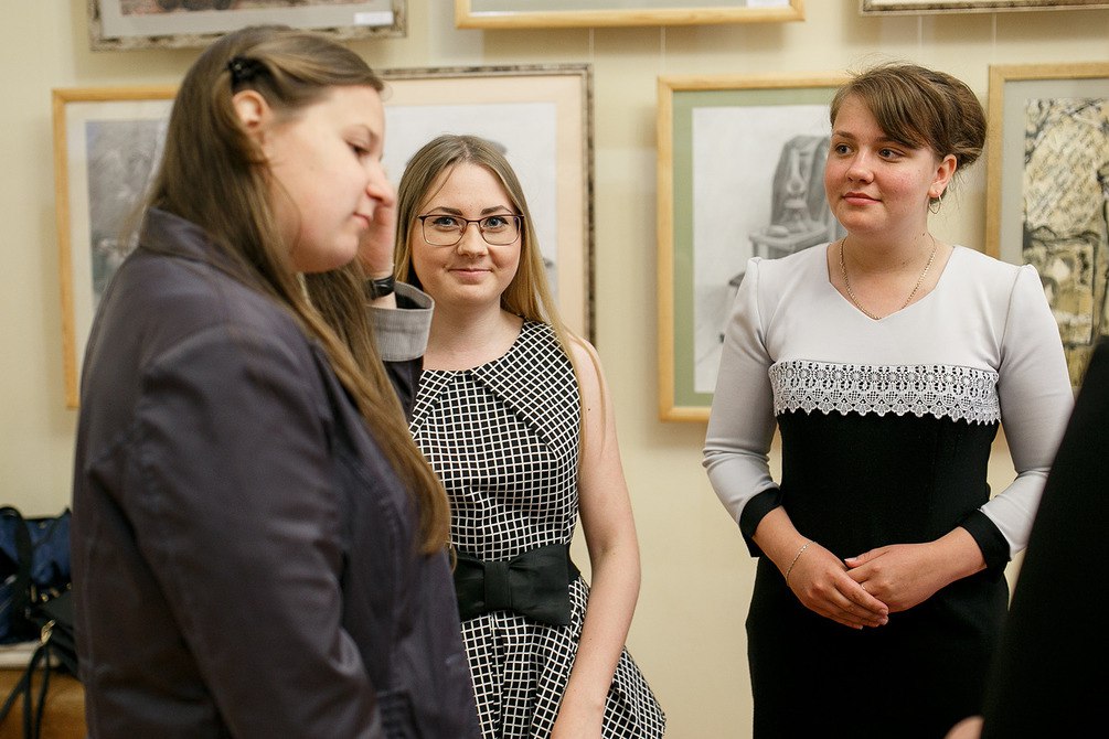 На стендах текстовые и фотодокументы, информация о событиях 70-летней давности. А ещё — портреты, лица… Это графические работы учащихся художественной школы, подготовленные для экспозиции «Краски Победы», которая проходит в художественной школе уже более пяти лет.