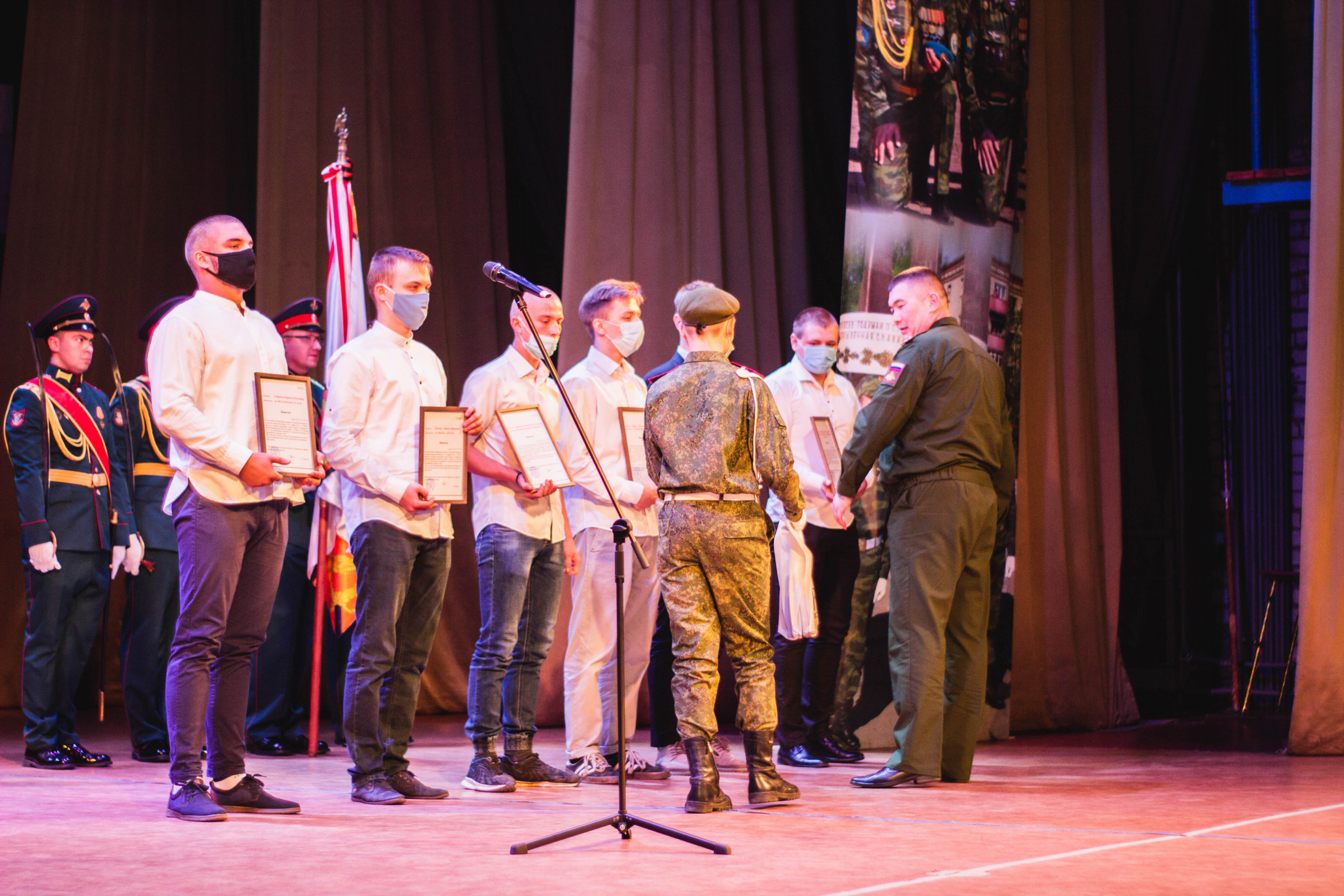 По традиции, на форуме приглашают призывников на сцену и торжественно вручают повестки. Официальная часть поздравления проходила к концу, и по завершению в поздравления внесли изюминку вокальные и танцевальные номера.