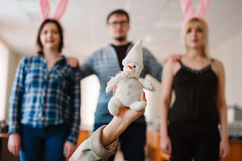 Всё, вроде бы, неплохо. Но не хватает какого-то духа времени, хайпа этакого. Может, тему «Грибов» добавить? Её сейчас все, кому не лень везде суют? Как там у них? Между нами тает лёд? За неимением сосулек, воспользуемся пост-новогодней атрибутикой. Снеговик подойдёт?