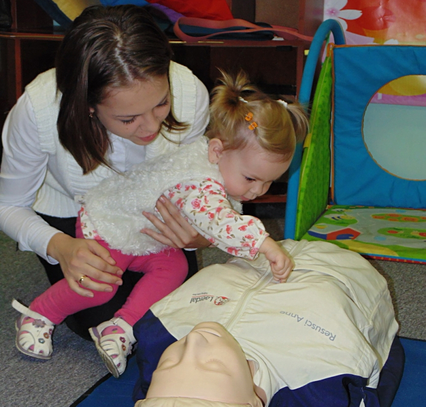 Молодые мамы, посещающие студию детского развития «Улыбка», во главе с руководителем Юлией Бобрулько, часто являются участниками мероприятий, организованных сотрудниками МЧС: посещают с экскурсиями пожарные части, организовали пикник для граждан Украины. А сегодня они учились оказывать людям первую помощь.