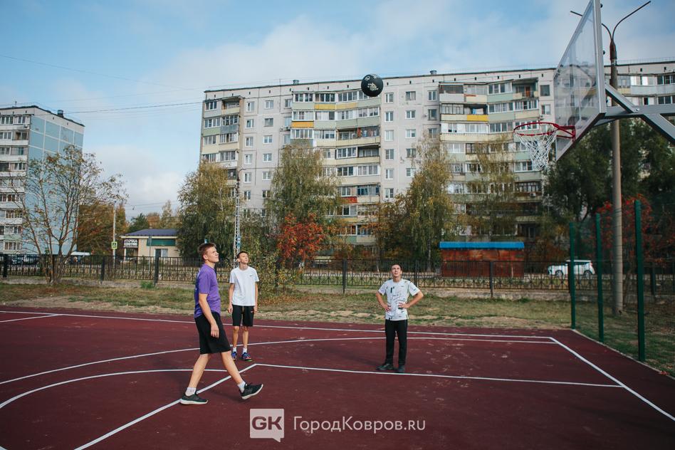 Отдельно — площадка с покрытием из резиновой крошки для игры в баскетбол.