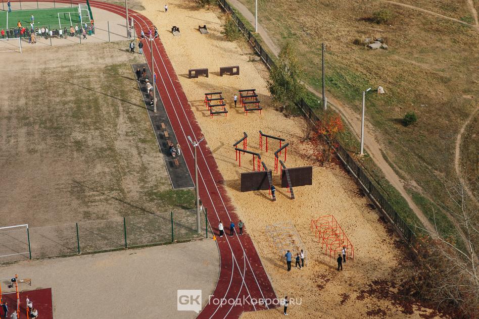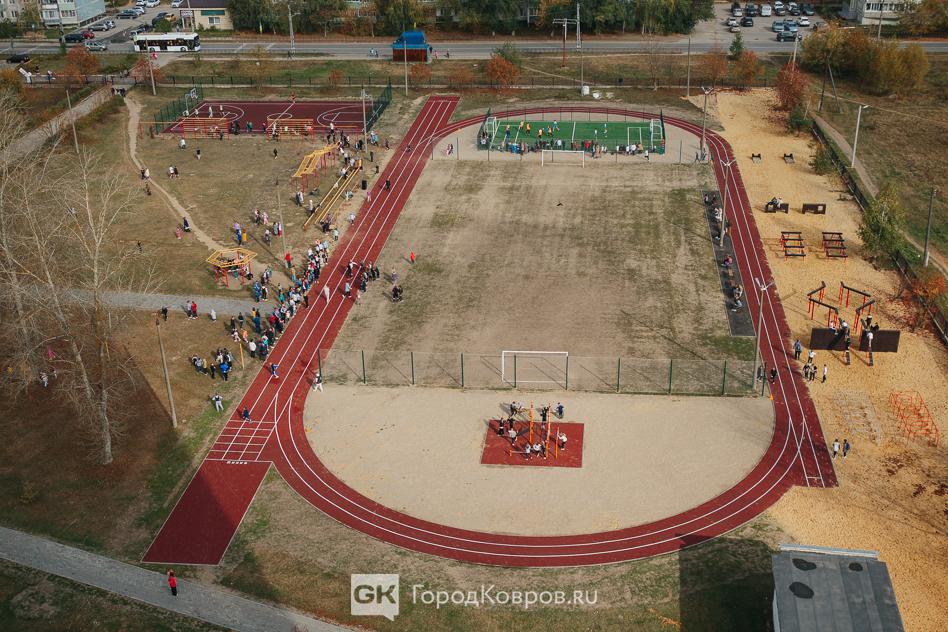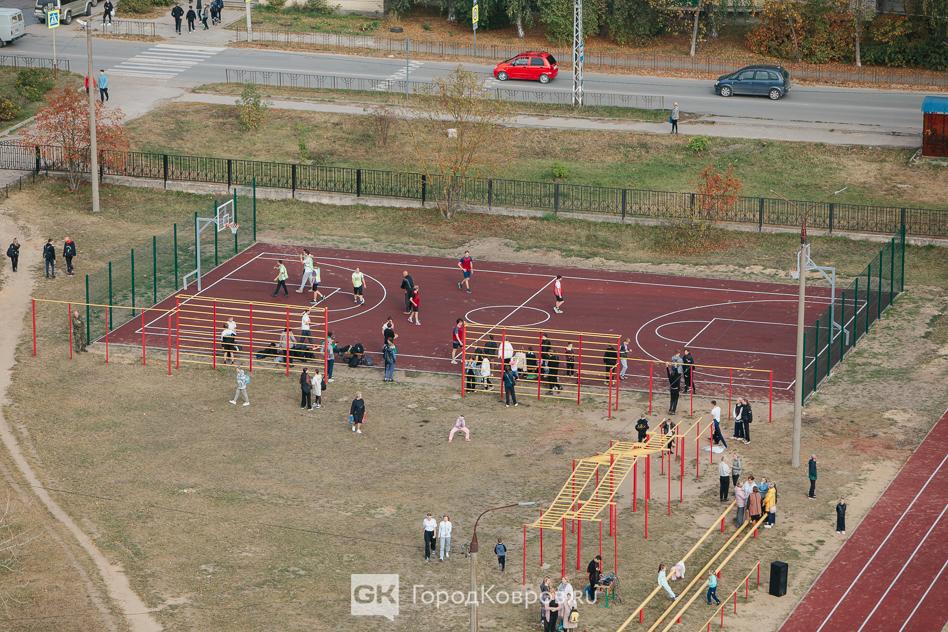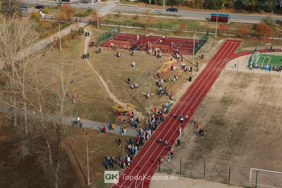 Спортивная площадка, которую позавчера торжественно открыли на территории, прилегающей к школе №21 в Коврове, это целая система спортивных сооружений. Всё вместе это вполне бы можно было назвать стадионом.