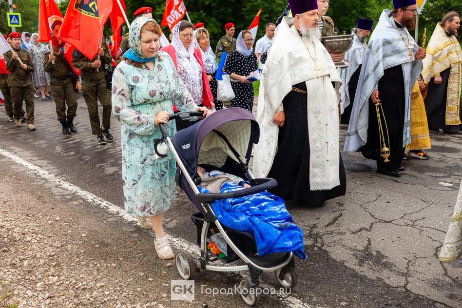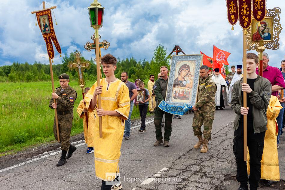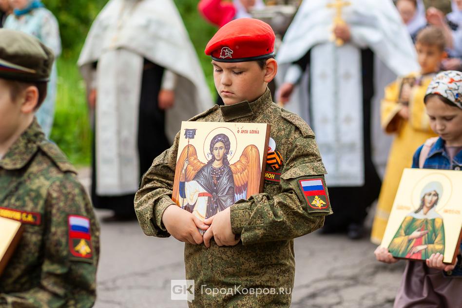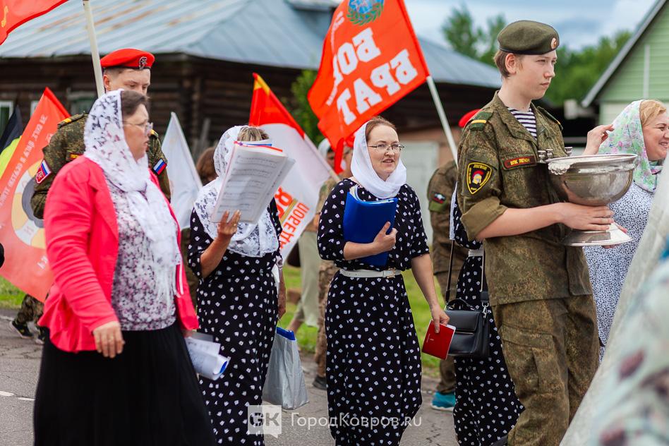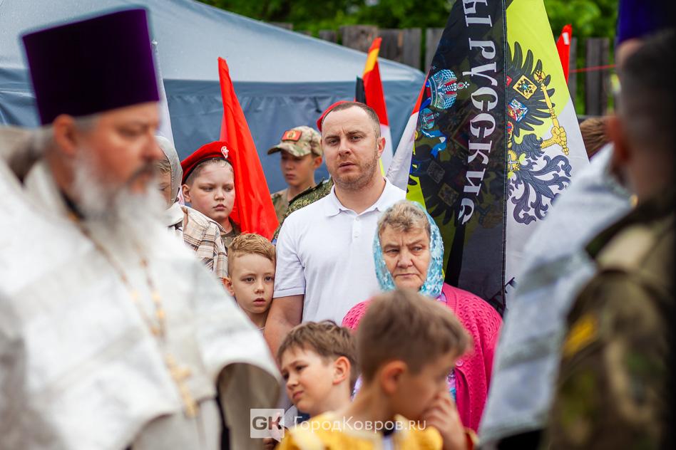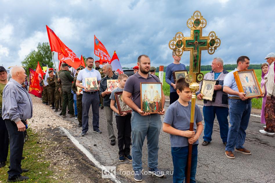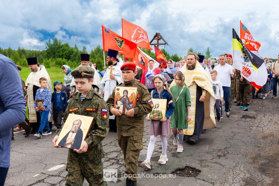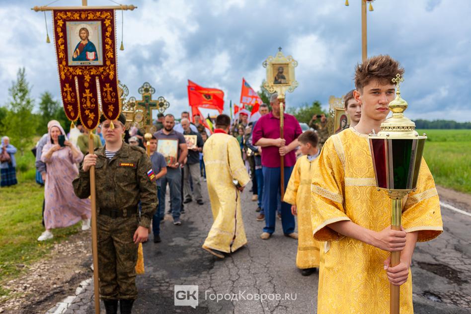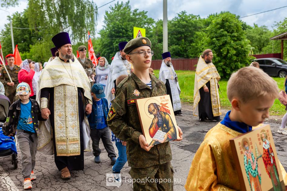 - «Мне очень приятно, что сегодняшнее событие собрало так много людей. Много молодёжи, детей. Это ребята из нашего села, дети прихожан. А ещё юнармейцы, которые приехали на Крестный ход. Юнармейцев сопровождал руководитель ковровского военно-патриотического клуба «Легион» Дмитрий Маштаков.