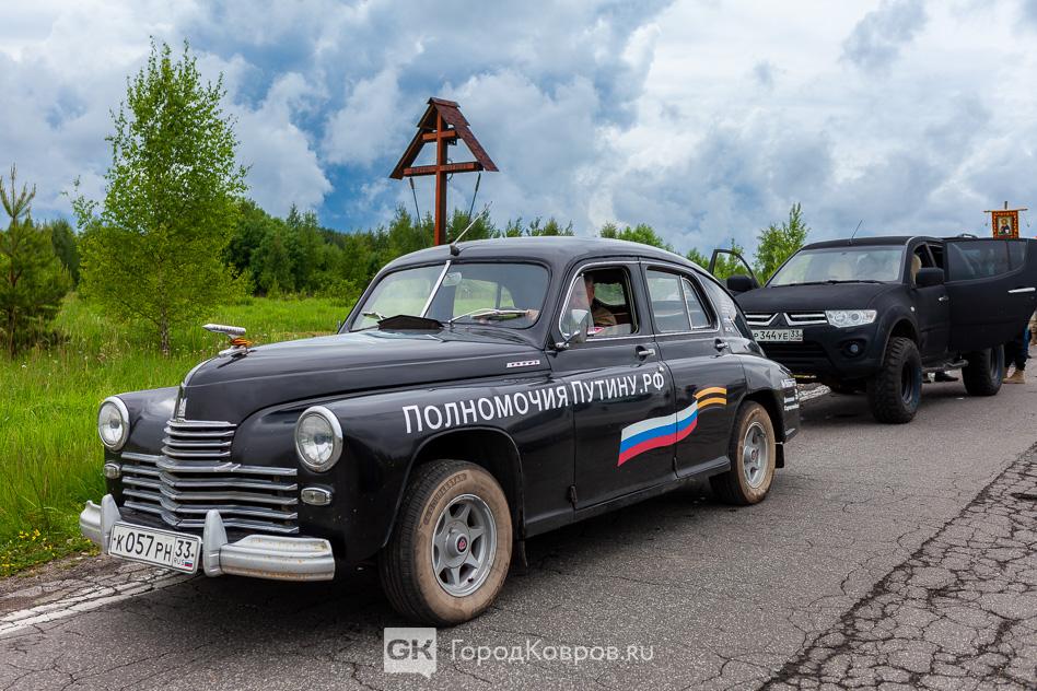 На этой приметной машине он доставил икону в Пантелеево. «Победа» возглавила Крестный ход. Ещё на одном автомобиле колонну сопровождал представитель «Боевого братства» Юрий Лебедев. Из сабвуфера на протяжении Крестного хода раздавался колокольный звон.