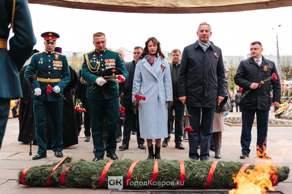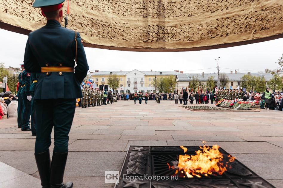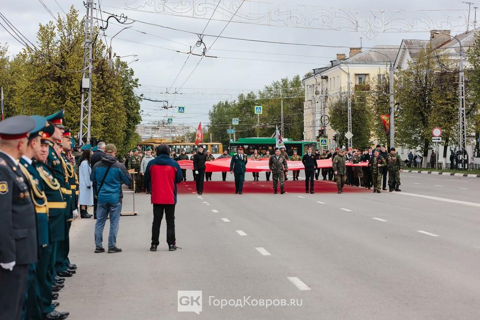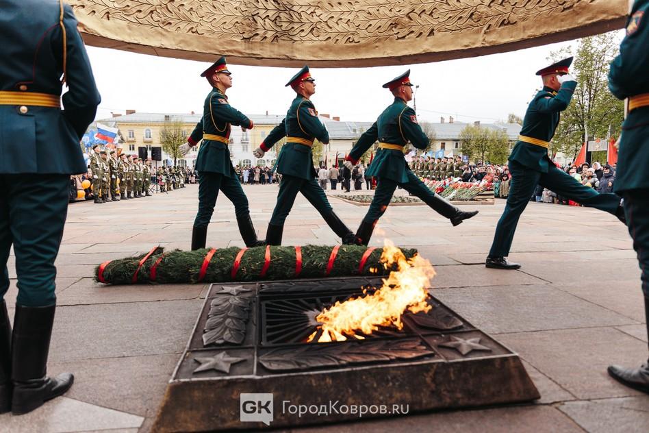 Сегодня на проспекте Ленина в Коврове прошёл парад Победы. В параде не участвовала военная техника, по соображениям безопасности администрация города ограничила мероприятие прохождением парадных коробок.