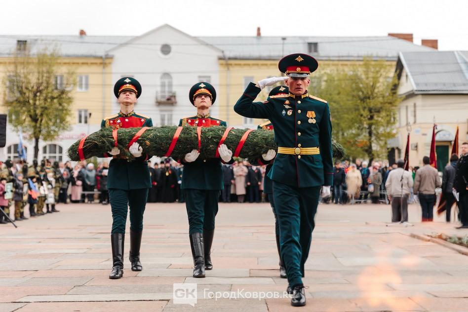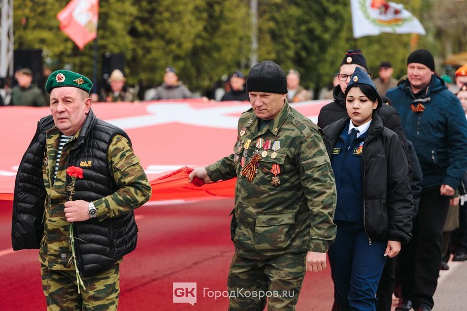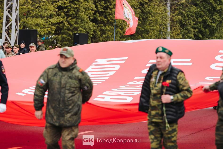 - «В знаменной группе проходят лучшие военнослужащие 467 гвардейского Московско-Тартуского Краснознаменного окружного учебного центра. Именно им предназначена честь открывать парад на площади Победы города воинской славы Ковров».