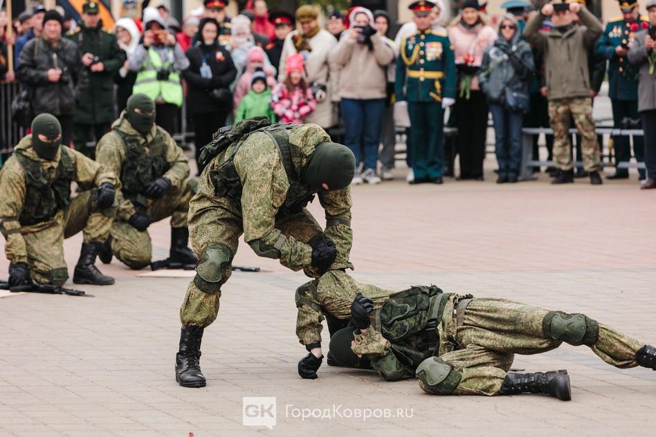 - «Товарищ гвардии полковник, парадные расчеты Ковровского гарнизона для парада в ознаменование 79 годовщины Победы в Великой Отечественной войне построены. Начальник учебного центра гвардии полковник Волковский».