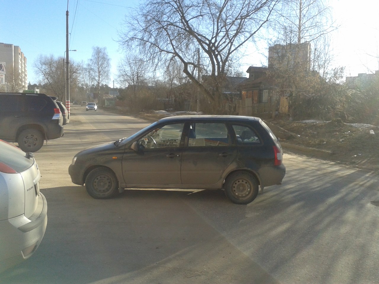 Пятница. 8 утра. У магазина «Пятерочка», что на пр.Мира, я обнаружил любопытно припаркованную машину Лада Калина. Она стояла на полосе дорожного движения, не доехав на парковку! Людям приходилось выезжать на полосу встречного движения, чтобы объехать препятствие.