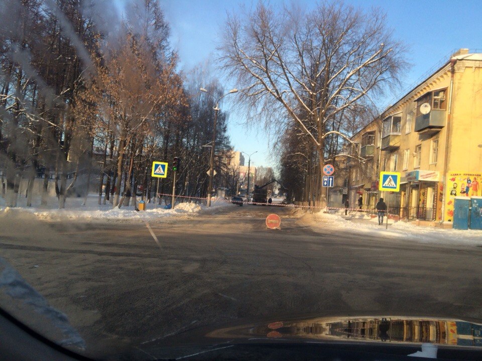 Фотофакт: на участке дороги по улице Ватутина рядом с площадью «200 лет» перекрыто движение транспортных средств. К счастью, ничего страшного не произошло: просто рабочие срезают ветки деревьев.