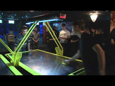 Финал получился настолько жарким и увлекательным, что к столам аэрохоккея было сложно пробиться. В поединке за чемпионство турнира встретились два почти равных по силе игрока, но лидер должен быть один.