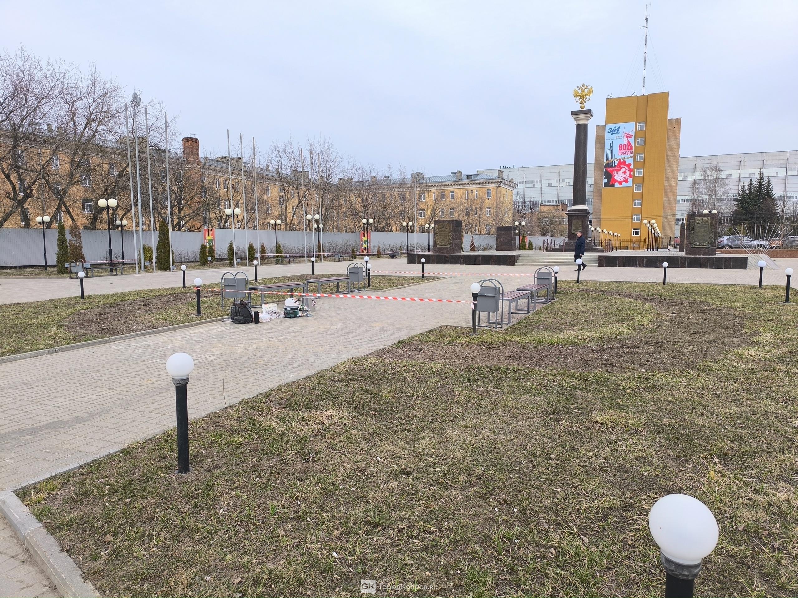 - Даже небольшие детали, ранее незаметные, сейчас преображаются. Скамейки у стелы Воинской славы, бывшие ранее потертыми и облупившимися, приобретают новый вид. И судя по сигнальной ленте рядом с засохшими туями, им будет уделено отдельное внимание.