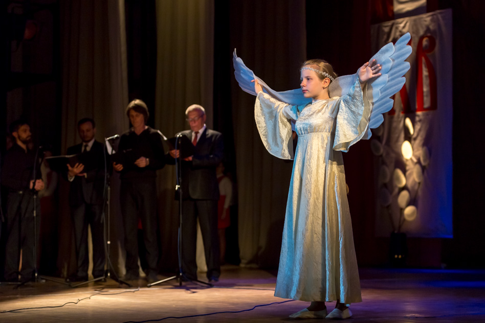 Вокальное исполнение было дополнено небольшой театральной постановкой: на сцену спустился ангел, роль которого исполнила Мария Будеева.