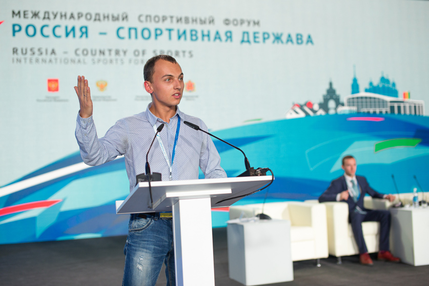 В первых рядах спортивные функционеры российского и даже мирового уровня — форум-то международный! Губернатор Орлова рядом со сценой.