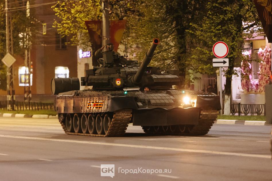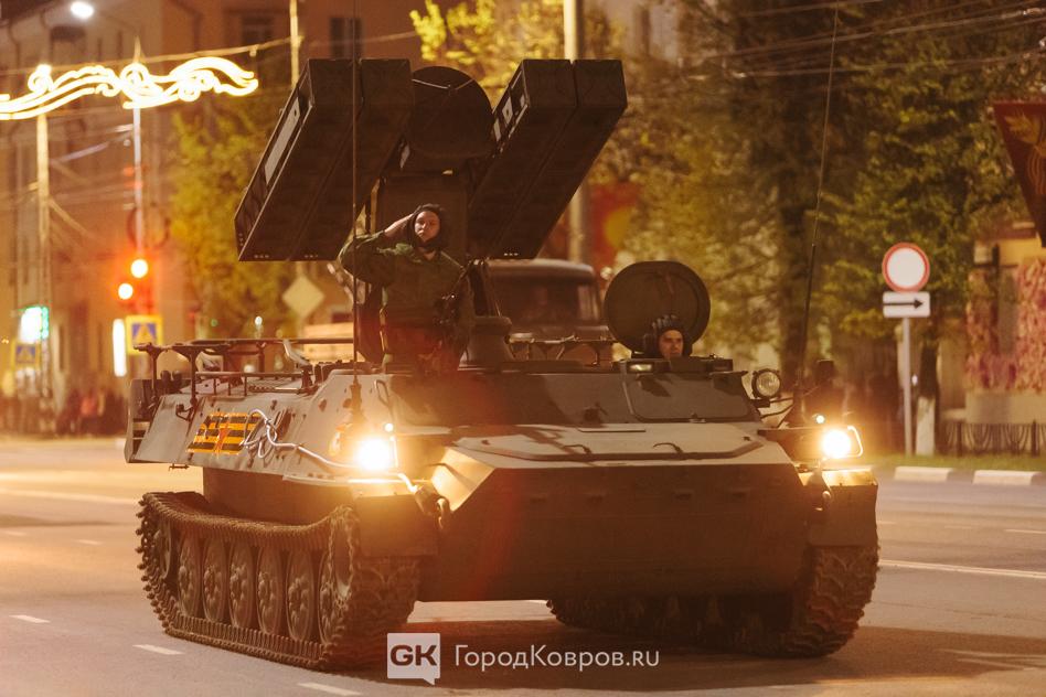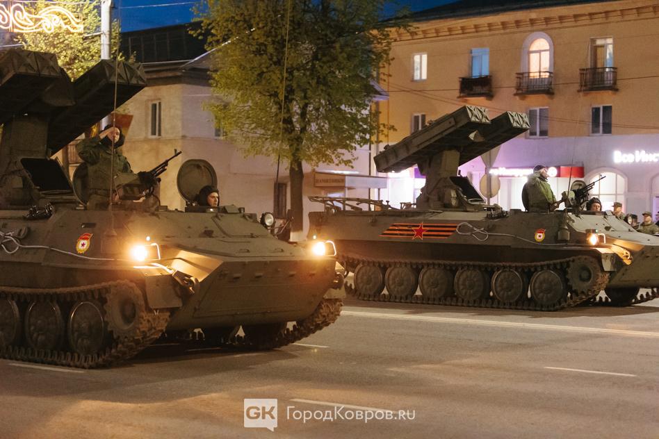 Боевые машины с половины восьмого вечера выстроились на проезжей части проспекта Ленина и ожидали своего выхода больше часа. Основное время на репетиции заняла отработка прохождения колонн и собственно начало — проезд командующего парадом на УАЗике.