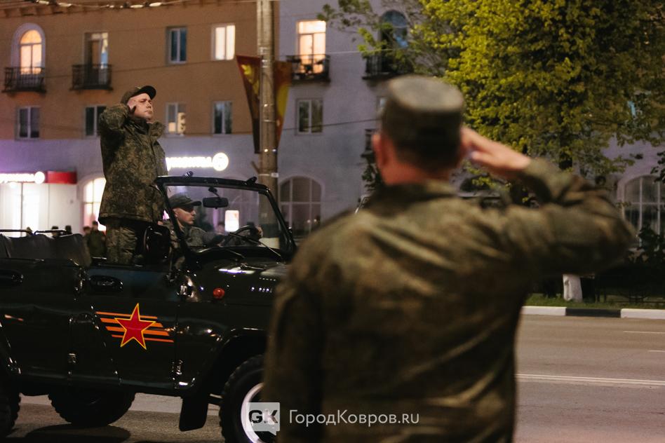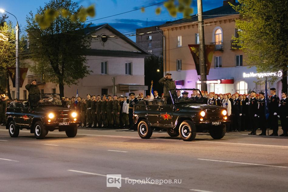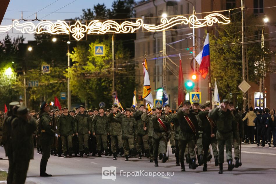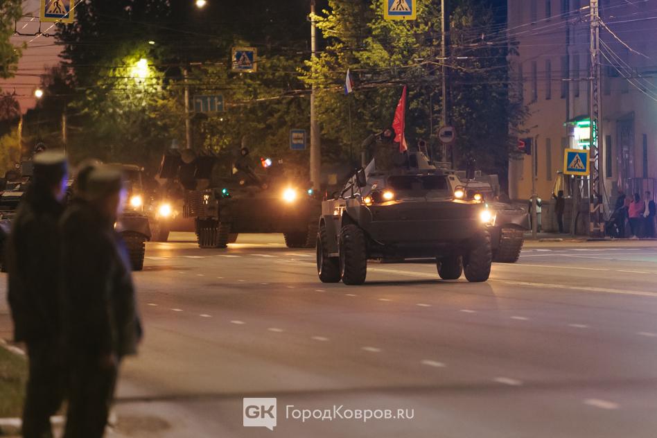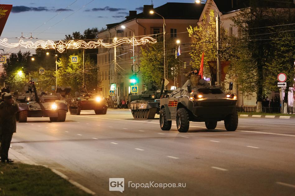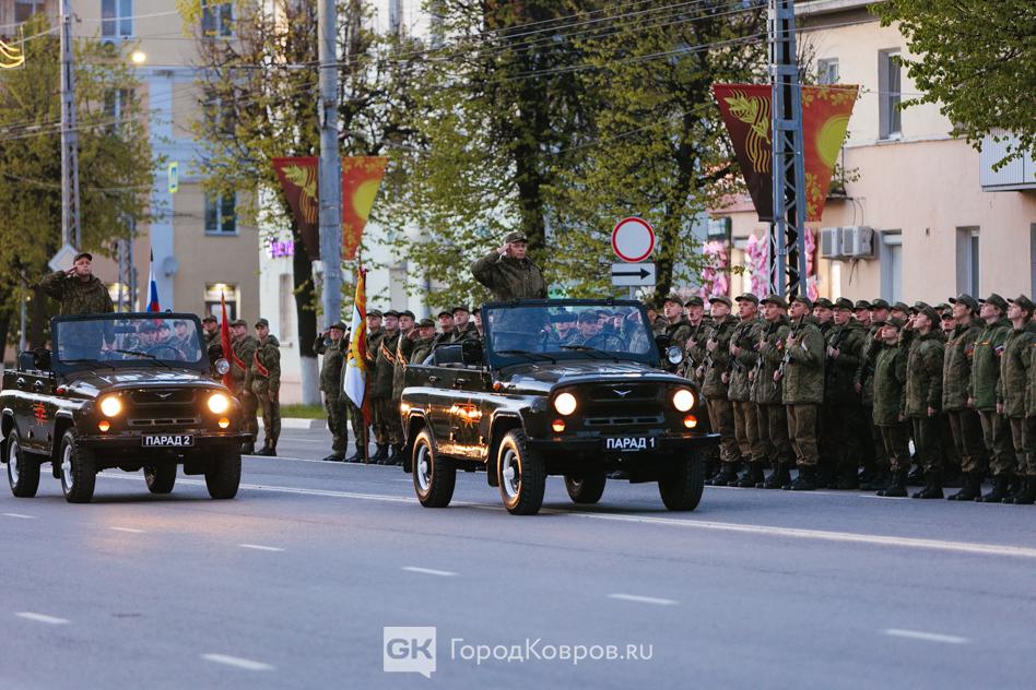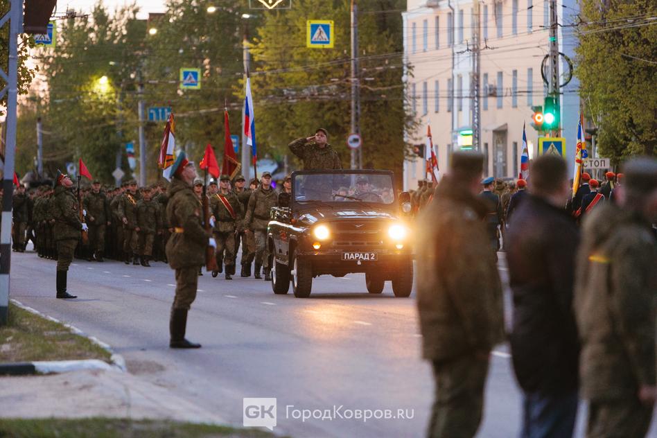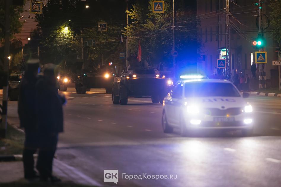 5 мая, с 20 до 22 часов центр Коврова был перекрыт. Движение автотранспорта блокировали троллейбусы, которые развернули поперёк дороги. Пешеходов тоже ограничили — тротуары перегородили турникеты, рядом с которыми выстроились полицейские и военные.
