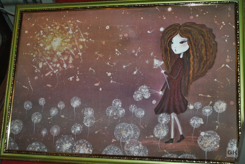 Теплом и положительной энергетикой веет от работ С. Дубининой – тоже постоянной участницей выставок. Ее работы всегда яркие, всегда солнечные и интересные. Одна из таких – «Ангел на велосипеде».