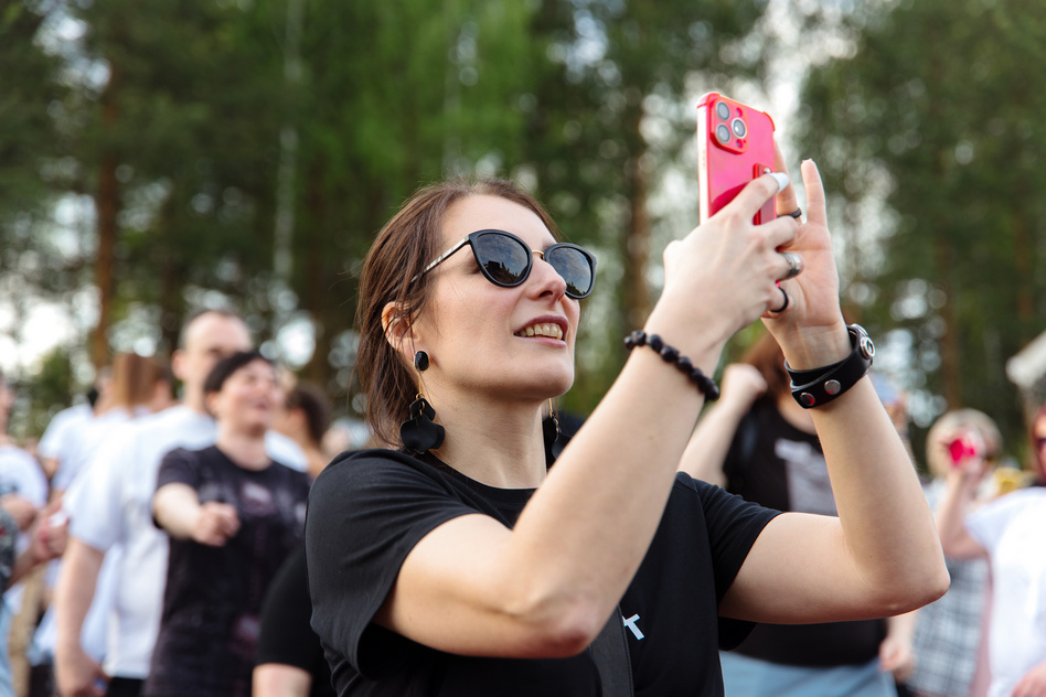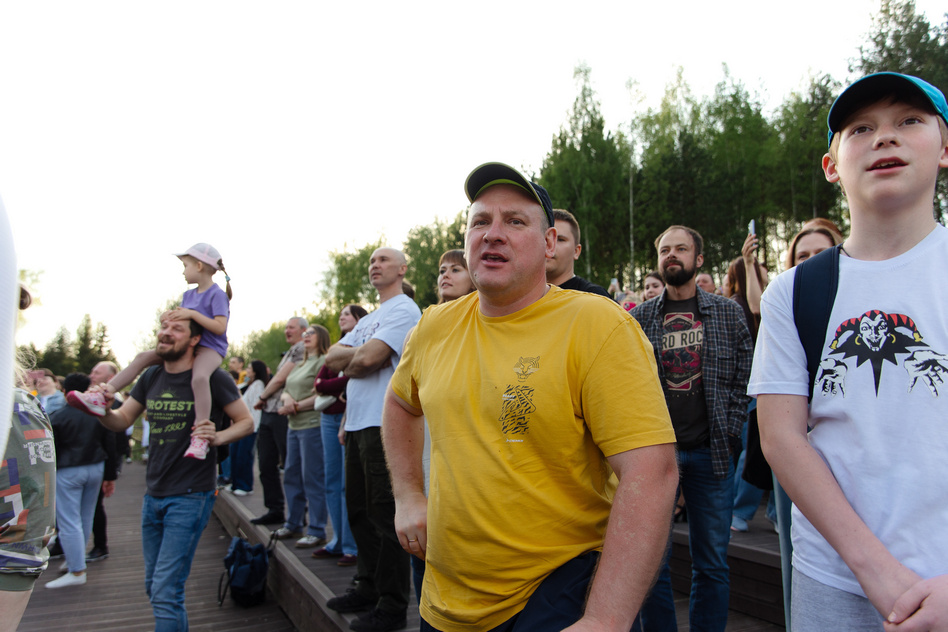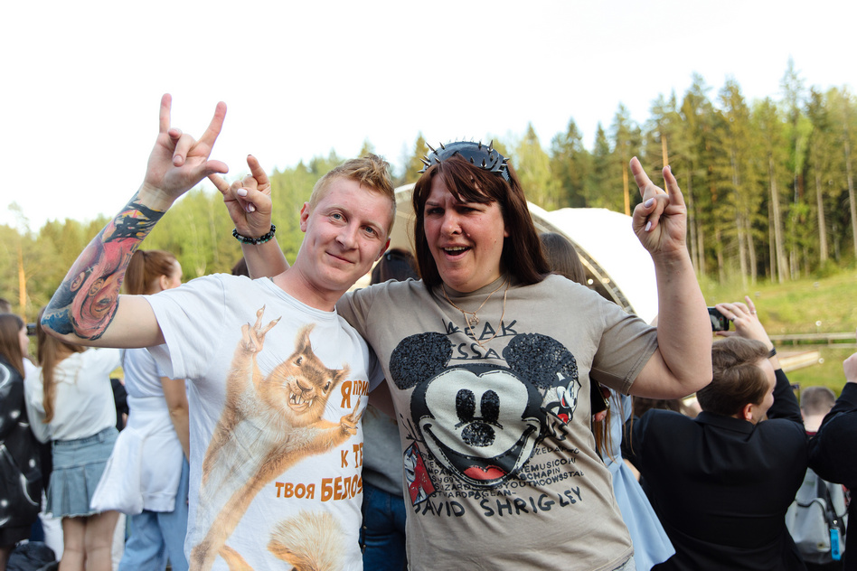 Энергетика зрителей была мощной, но в пределах допустимой нормы. Разумеется, «Лесника» пели все. Настроение зрителей отлично передают фото — даже те, кто не считает себя фанатами панк-рока, позировали с «козой».