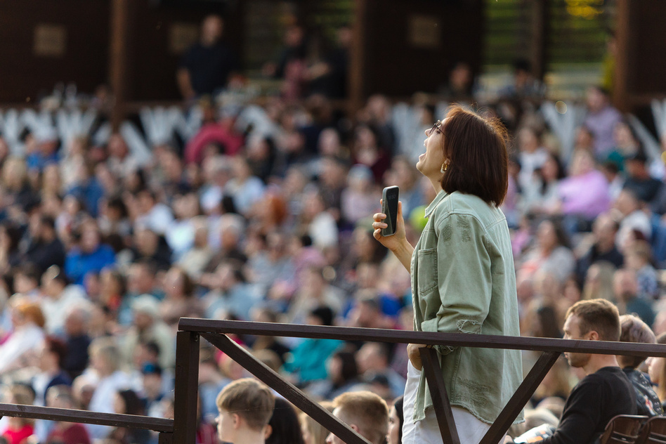 Немало зрителей на концерт пришло пешком, из Доброграда. Всех перед входим на территорию парк-отеля проверяли металлоискателем, просили уточнить, что в сумочках и барсетках — вынужденные и оправданные меры безопасности.