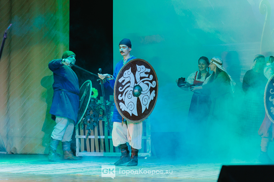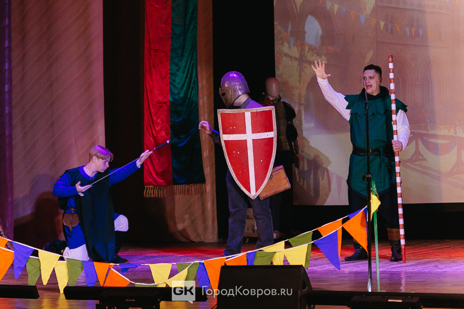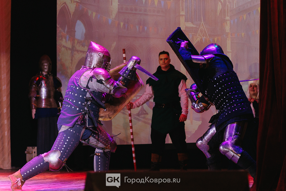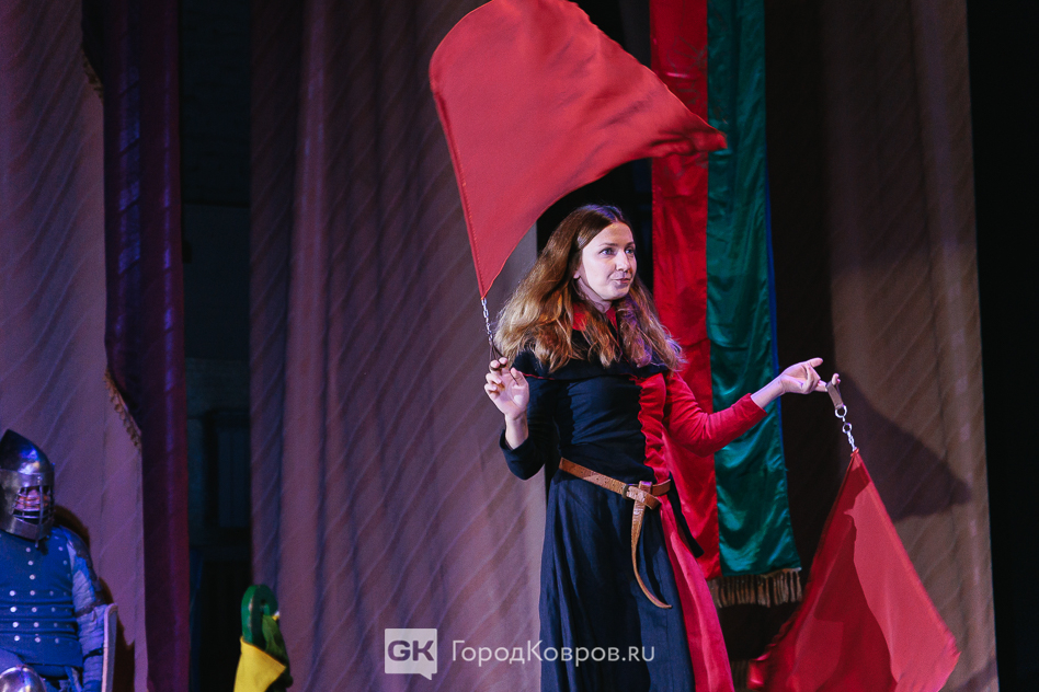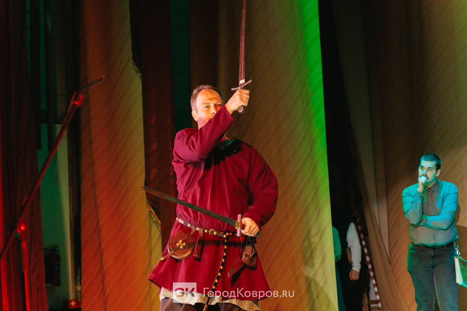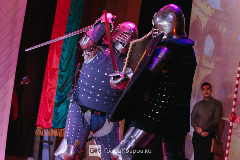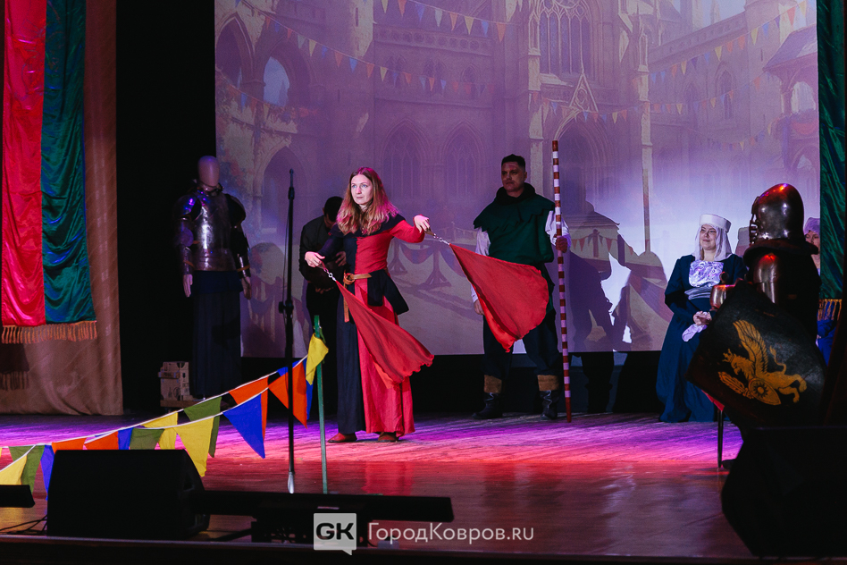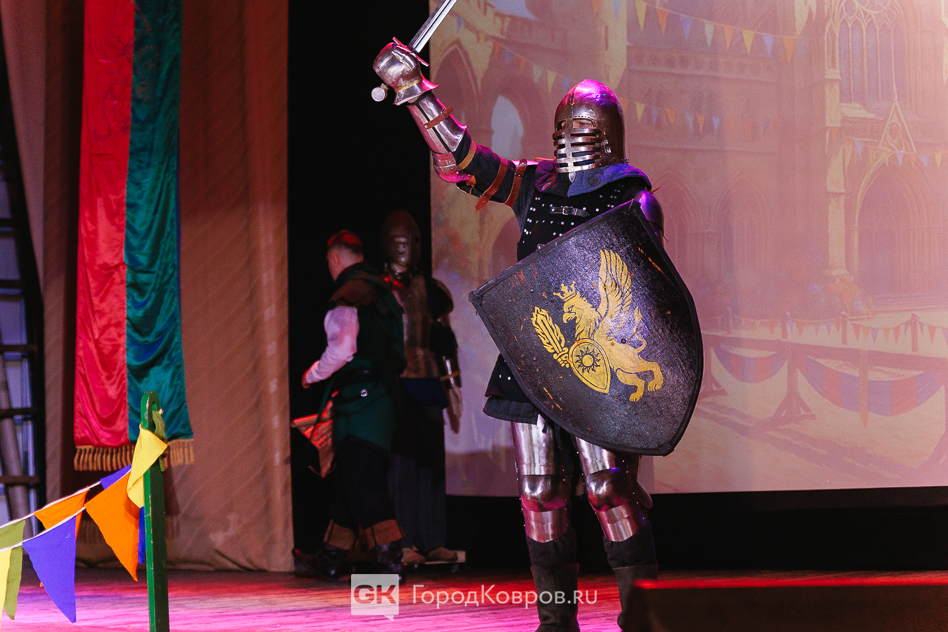 Кульминацией праздника стало представление на сцене ДК. Различные аспекты деятельности клуба «Врата Свободы» продемонстрировали через мини-спектакль со сквозным персонажем. Некий молодой человек из настоящего при помощи волшебной книги переносится в прошлое и поочередно становится участником то рыцарского турнира, то бала, то военного похода.