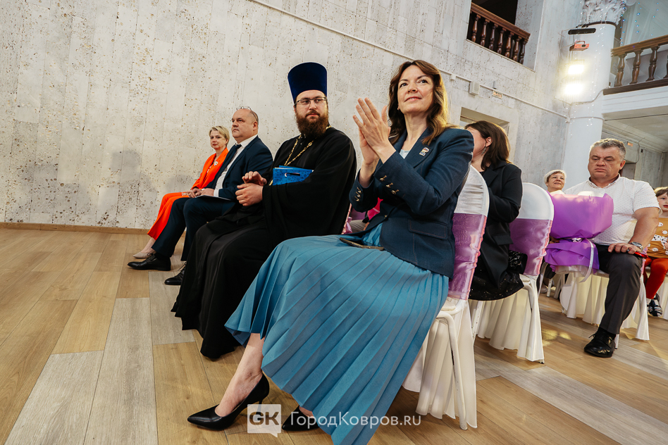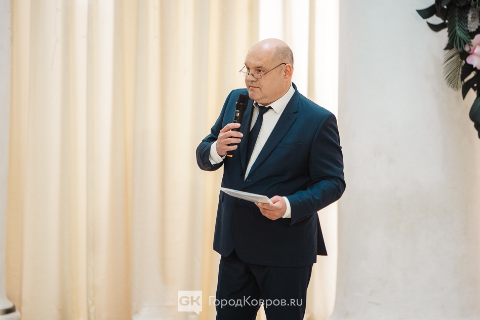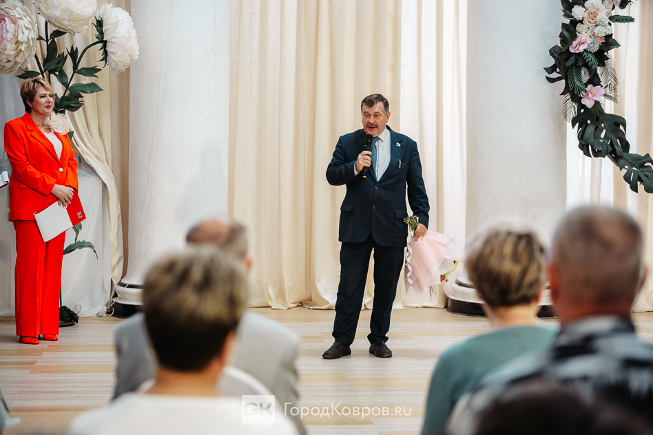 Не менее волнительным стало напутствие благочинного Коврова и Ковровского района отца Павла. С поздравлениями и подарками на церемонию пришли представители трудовых коллективов, которые и рекомендовали супружеские пары. От имени всех коллег по работе выступил председатель профкома ЗиДа и депутат горсовета Игорь Петроченков.