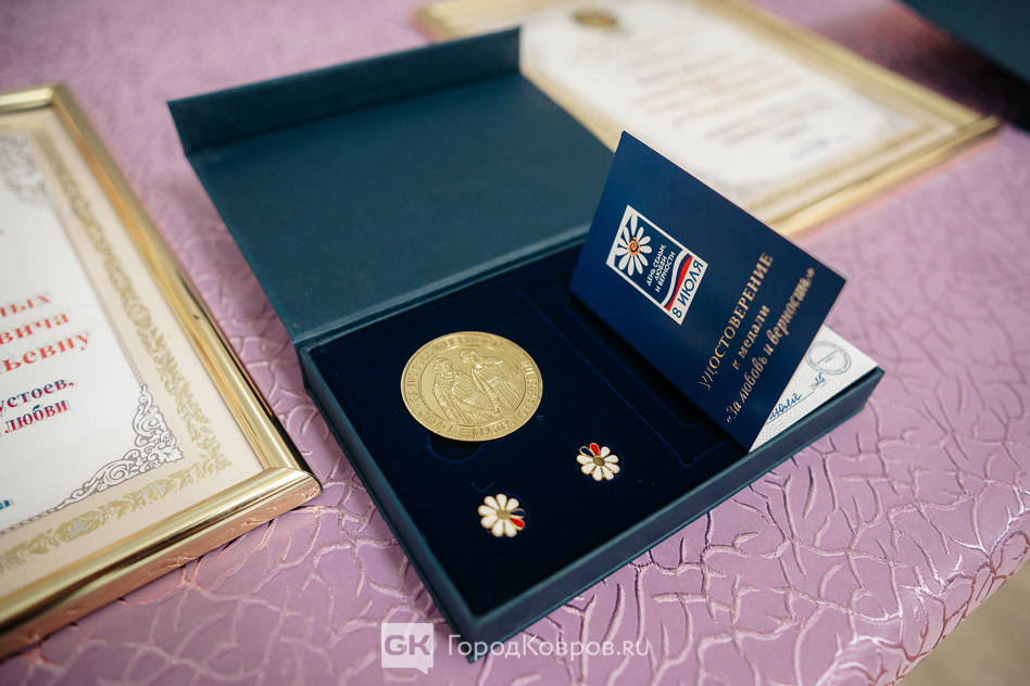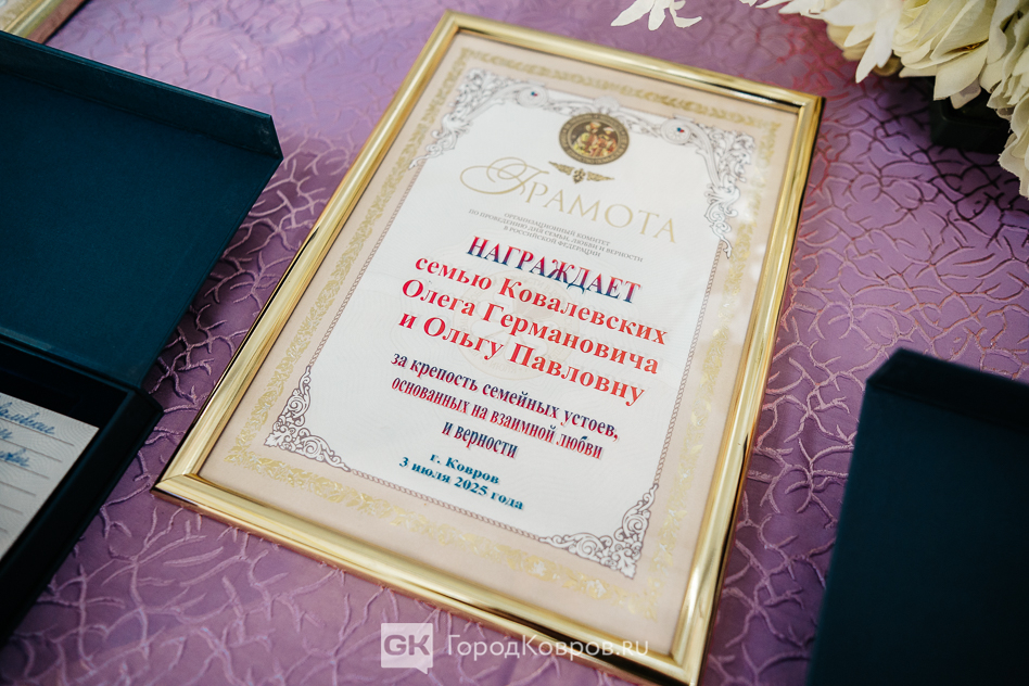 Сегодня, 3 июля, в Коврове чествовали супружеские пары, прожившие в законном браке более 25 лет. Церемония в ДК имени Ленина прошла в канун Дня Благоверных Петра и Февронии, который в России отмечают как День семьи, любви и верности.
