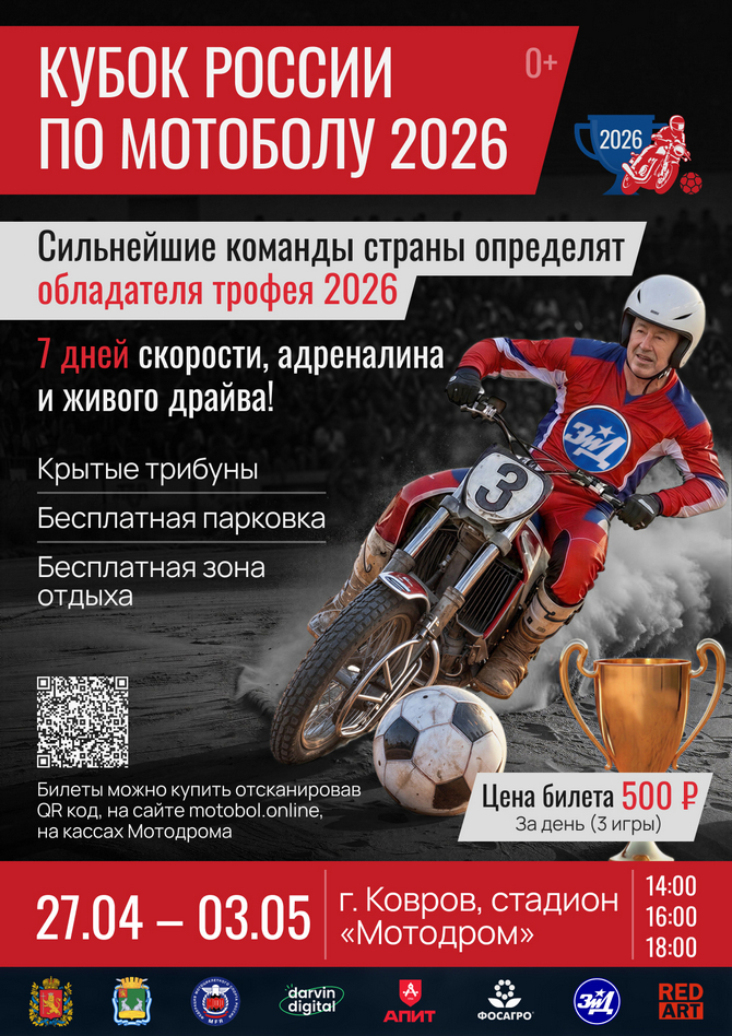 С 27 апреля по 3 мая Ковров станет центром одного из самых зрелищных и динамичных видов спорта в стране. На стадионе «Мотодром» разыграют Кубок России по мотоболу. Шесть сильнейших команд из разных регионов встретятся, чтобы выяснить, кто достоин главного трофея.