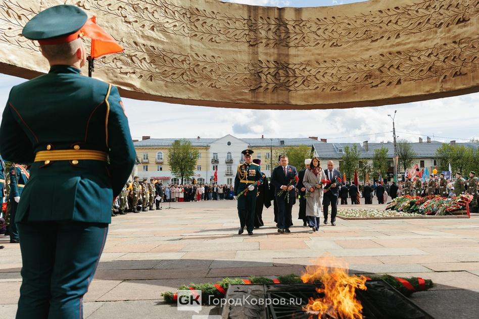 В Коврове утром 9 мая на территории, прилегающей к площади Победы, состоялся военный парад. Боевая техника и прохождение парадных коробок могли «вживую» наблюдать приглашенные ветераны и общественники, представители администрации города и аккредитованные журналисты.
