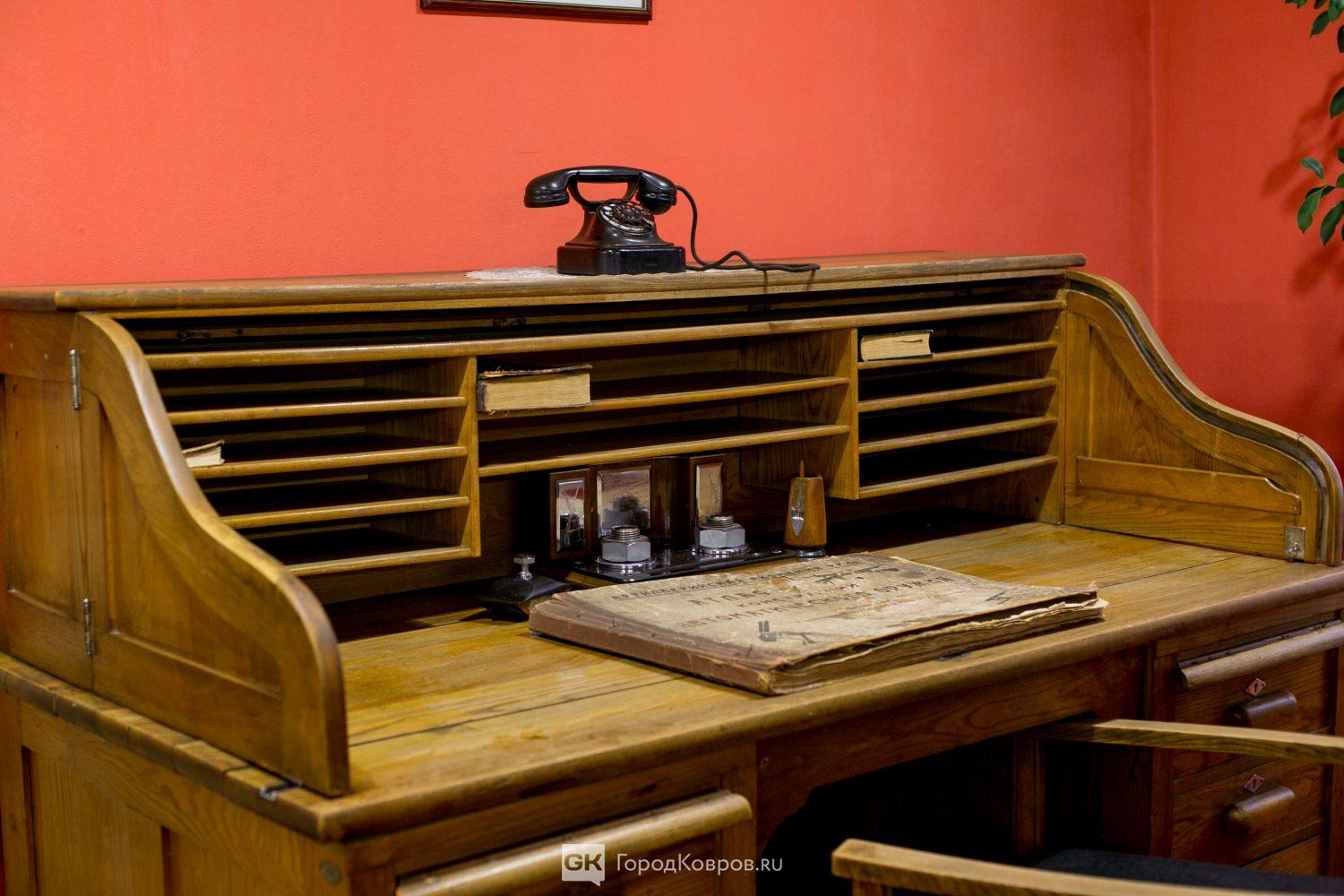 Среди экспонатов уникальный рабочий стол. Огромных размеров, чтобы уместилось любое оружие. Стол имеет задвижки по бокам и закрывается сверху крышкой. Как хлебница. Василий Алексеевич работал на нем и мог в любой момент закрыть крышку на ключ, оставив все свои чертежи, детали. Никто никогда не знал, что именно у него в наработках.