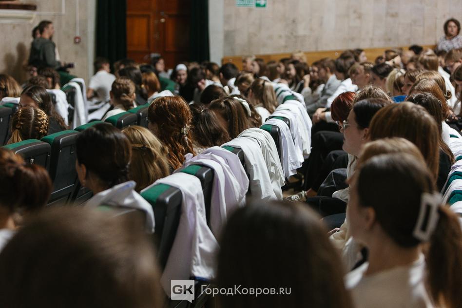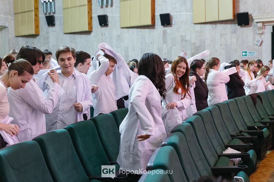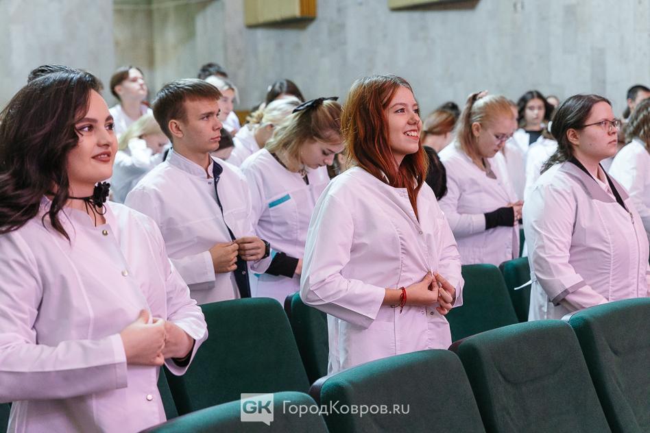 Исполняющий обязанности главы Коврова Сергей Сидорин и председатель горсовета Елена Фомина, которые приехали поздравить первокурсников, в приветствиях проводили общую мысль: «Учитесь, получайте дипломы и оставайтесь работать в родном городе». О дефиците кадров в больницах, конечно, в праздничный день бы не хотелось, но от правды не уйти.