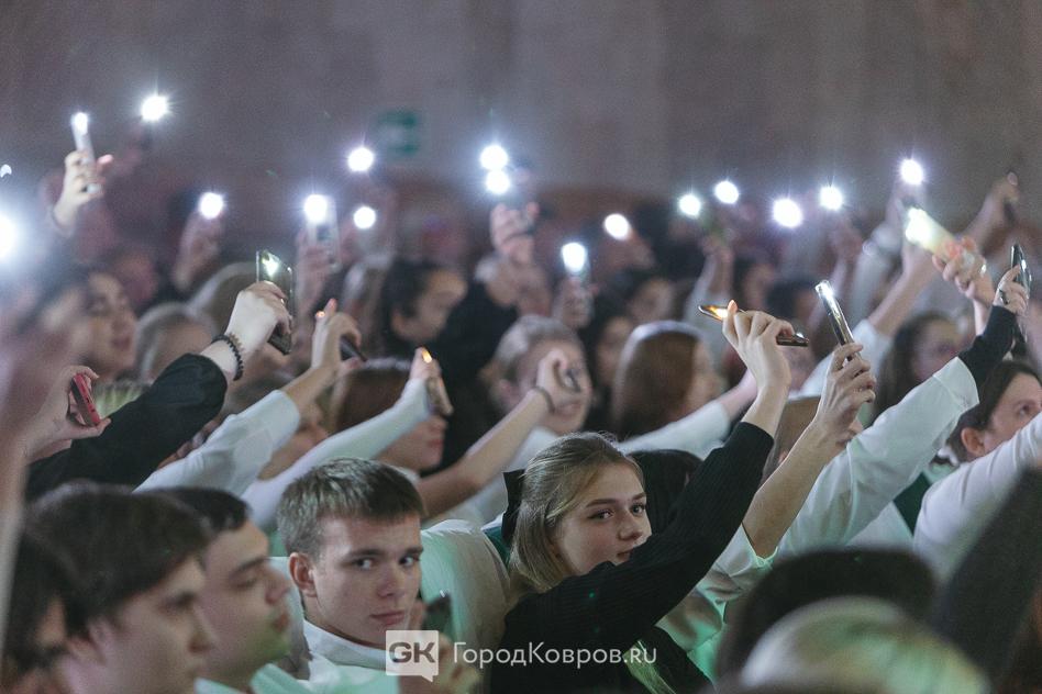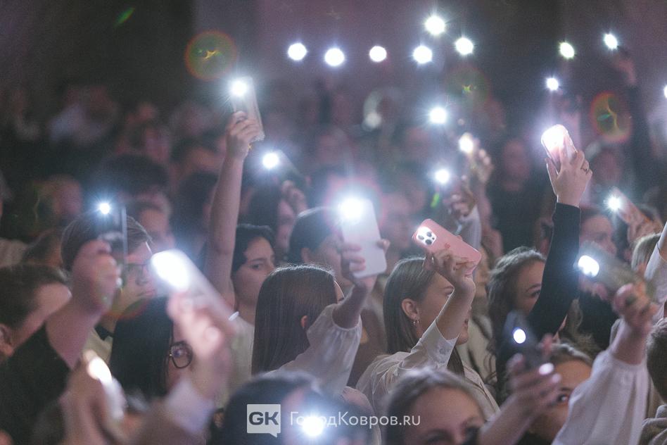 Студенты в зале вокальные и танцевальные номера поддерживали с воодушевлением. Во время одной из песен зал зажегся фонариками смартфонов.