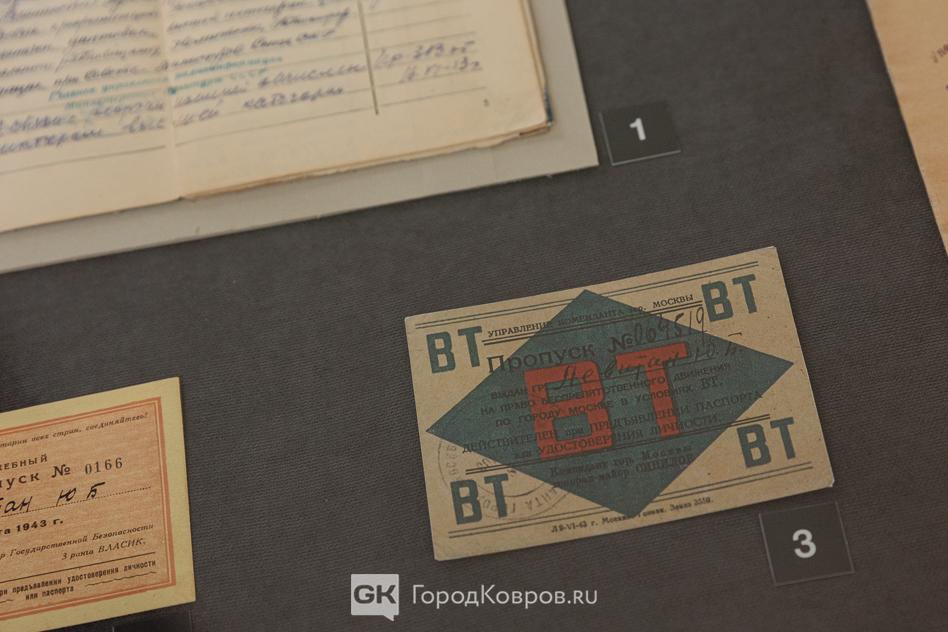 В экспозицию включено немало предметов, которые представляют особую ценность. Например, пропуск в Кремль периода 40-х годов прошлого века.