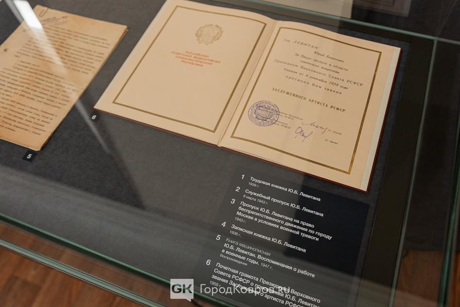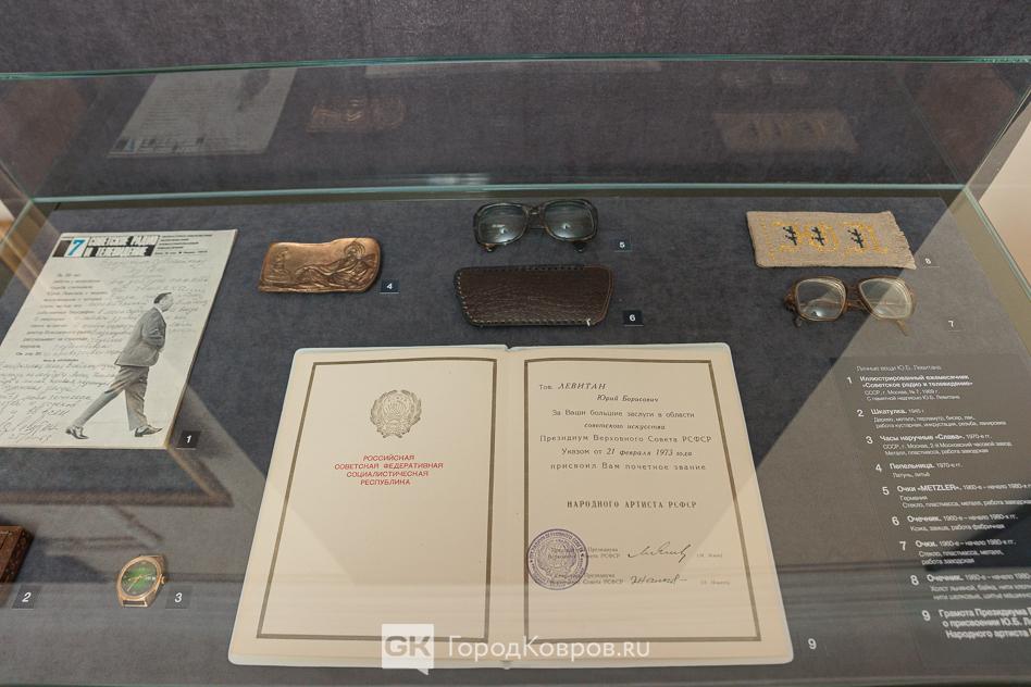 Увидеть микрофон Юрия Левитана, его трудовую книжку, пропуск в Кремль и очки с очешником, а также много увеличенных фото из его семейного архива ковровчане смогут на протяжении мая.