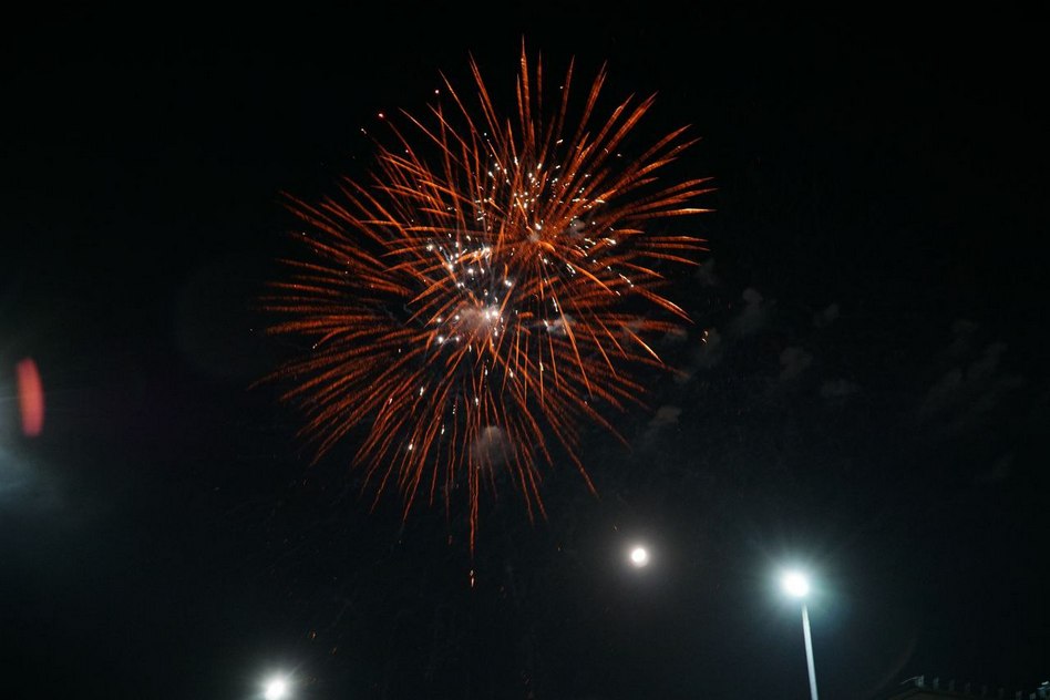 Опять-таки, полиция. Ну, молодцы. Так же грамотно, как и запускали народ на мотодром, зрителей вывели с поля. Началась подготовка к фейерверку. Залпы грянули, люди громко приветствовали каждый из них. И даже как-то подзабыли, что помимо соцветий фейерверка небо над Ковровом украшала полная и кровавая луна, которая, к тому же, затмилась.