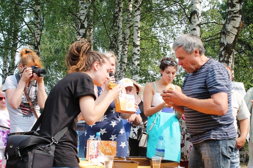 В завершении праздника прошли два больших конкурса. Первый из них – поедание на скорость тортов «Медовик», а второй, пожалуй самый красочный, — конкурс полевых и садовых букетов.