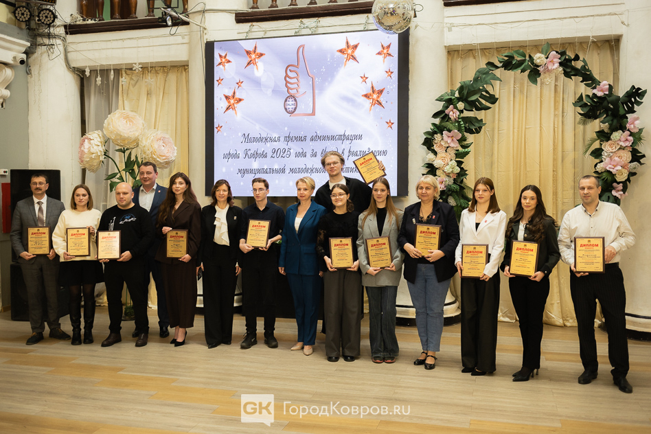 17 декабря в Доме культуры имени В.И. Ленина собралась цвет ковровской молодёжи — инициативная, талантливая и неравнодушная. Здесь состоялась церемония награждения лауреатов Молодёжной премии 2025 года за вклад в реализацию муниципальной молодёжной политики. Событие стало ярким финальным аккордом уходящего года, подведя итоги работы самых активных молодых людей и их наставников.