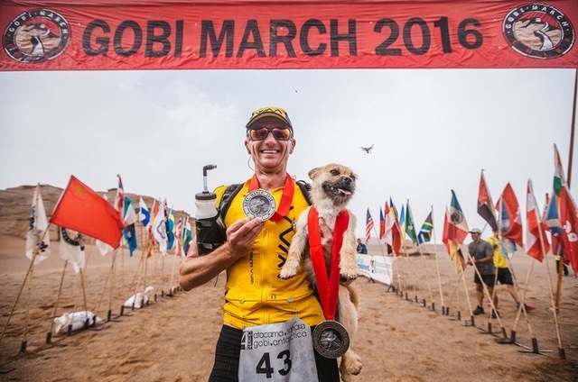 Маленькая бездомная собачка с первого дня решила присоединиться к команде бегущих. Не смотря на сложные условия и высокую температуру, Гоби удивительным образом справлялась с марафонской трассой, и когда они достигли лагеря, она забежала в палатку Диона и легла рядом. Пушистую малышку назвали Гоби.