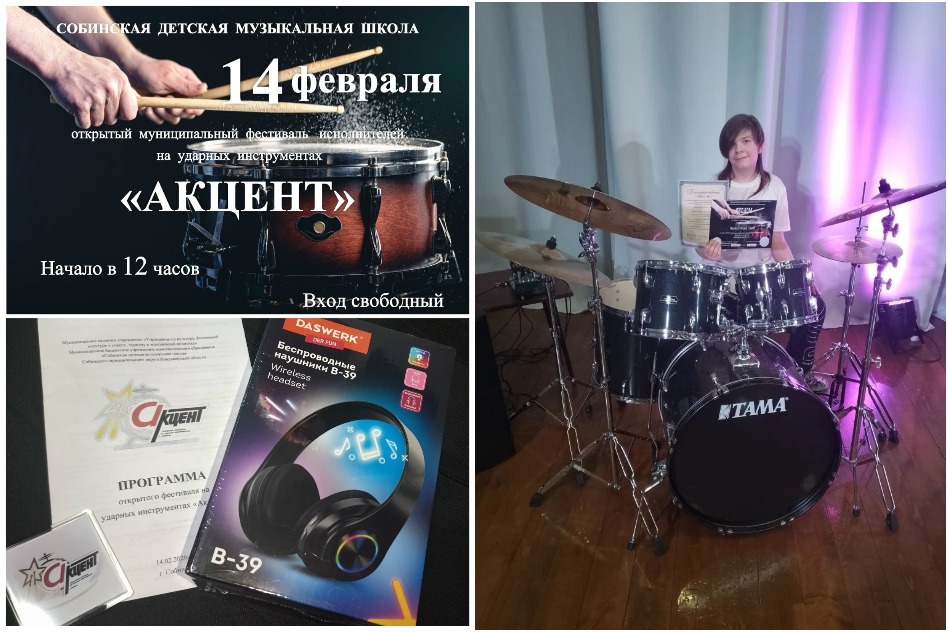 Через неделю эстафету подхватила Собинка. Первый открытый фестиваль исполнителей на ударных инструментах «Акцент» прошёл в стенах Собинской детской музыкальной школы, которую гости называют «другой Вселенной». Современный дизайн, величественный концертный зал, продуманная организация — здесь всё располагало к творчеству.