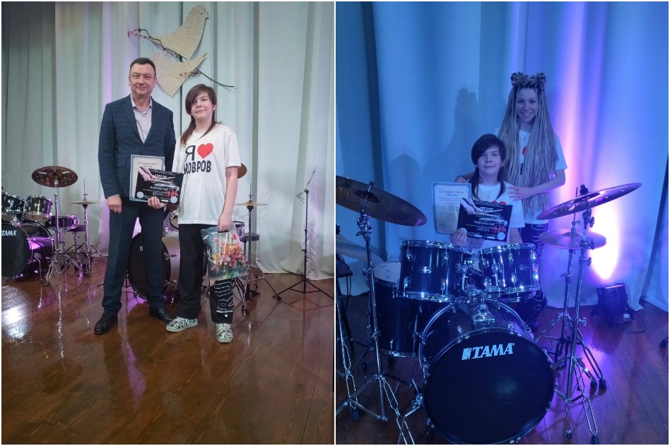 О Глебе Капустине «ГОРОДКОВРОВ.РУ» рассказывает не впервые. В прошлом, 2025 году, корреспондент издания встречался с юным барабанщиком дважды. Летом мы увидели его выступление на площади 200-летия города в рамках проекта «Вечерний Ковров» — серии концертов самодеятельных коллективов под открытым небом.