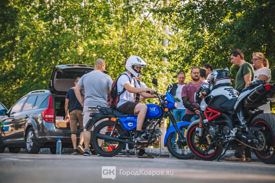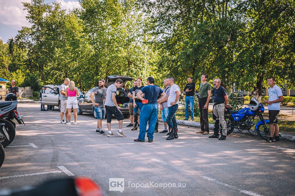 Участники вначале отдыхали с дороги. Кто-то проделал нелегкий и длинный путь. Да, на джимхану не только ковровчане приезжают. Мотоциклисты делились впечатлениями о недавних путешествиях, под стаканчик лимонада. Некоторые уточняли что-то у более опытных гонщиков.