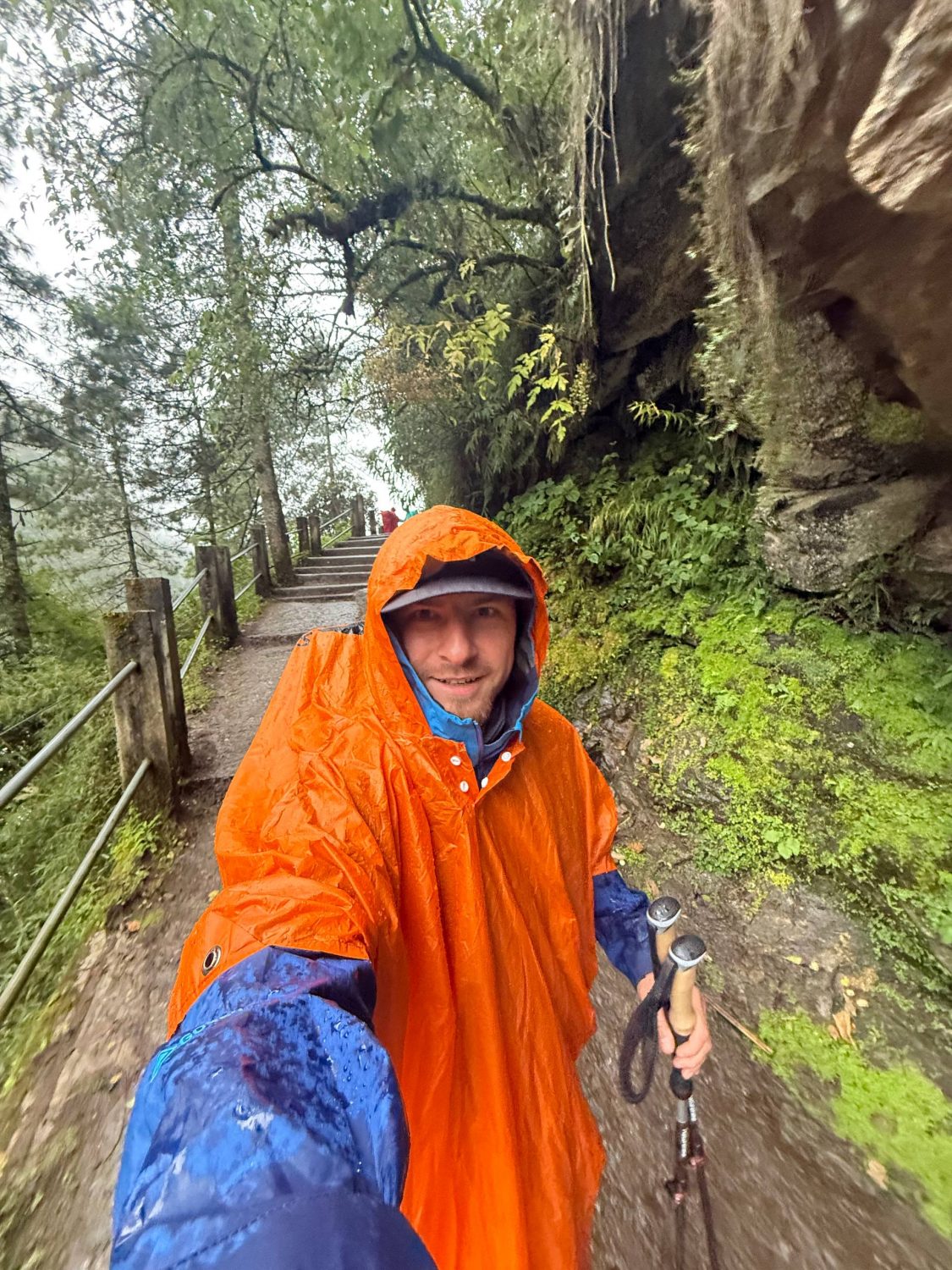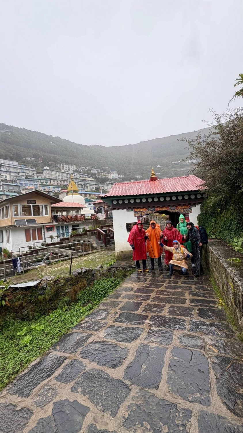 - «4 октября. Сегодня второй день нашего трека. Впереди переход до столицы шерпов Намче Базар. Пройдем 11км с подъемом 1000м. Погода испортилась, на ближайшие два дня проливной дождь. Но для нашей команды это не помеха. Нас ждут бары Намче».
