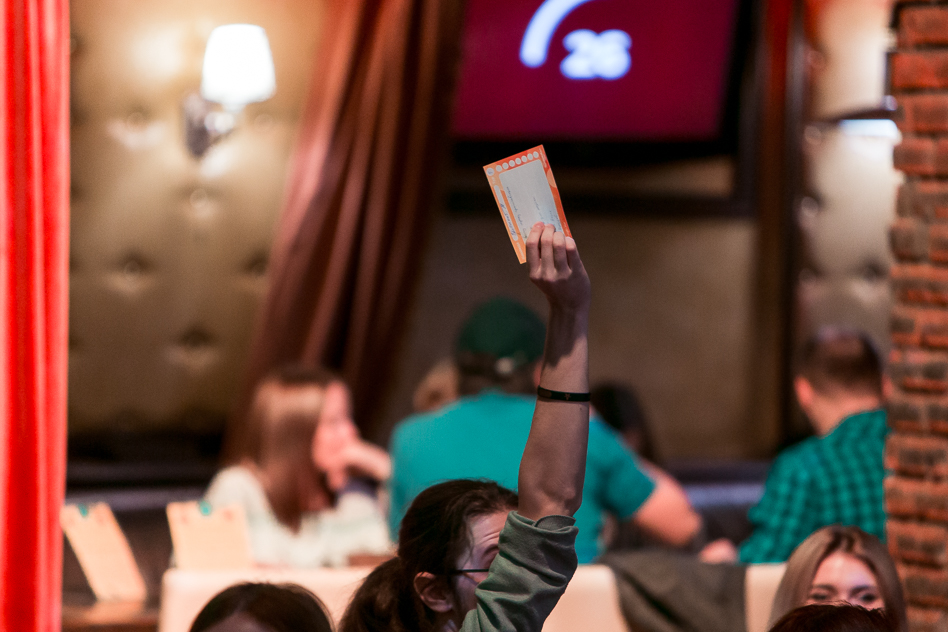 Из минусов, пожалуй, отметила бы громкость звука. Не только моё мнение – музыка и речь ведущего по громкости шли на уровне клубной вечеринки, поэтому общаться со своей командой порой приходилось путём крика прямо в ухо соседа по столику. О моей команде. Вышло спонтанно – позвали поиграть с ребятами из компании «ITNET». А ведь изначально собиралась пойти исключительно как блогер-одиночка, чтобы со стороны наблюдать за процессом.