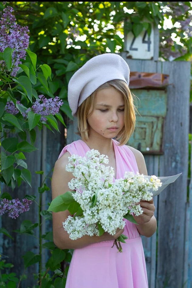 Причем на самом деле Соня (так зовут девочку на фото) в жизни как сорванец-мальчишка. По замыслу автора захотелось одеть ее в нежное платье, дать букетик сирени в руки. Тем самым передать путем фото женственность и красоту.