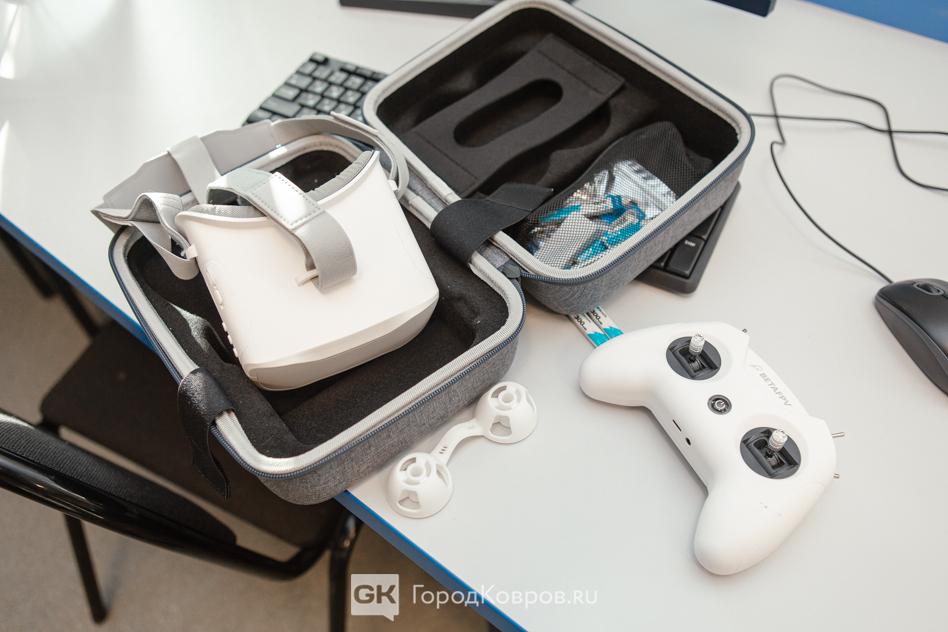 Этот коптер – тот самый, что принёс победу на гонках «Ветер Северный». Тогда на все гонки у меня ушло шесть аккумуляторов… Поставили новый аккумулятор. Сейчас на нём учатся дети летать, первый опыт получают… Ведь помимо практики, мы с ребятами разбираемся, какие бывают квадрокоптеры. И что они могут собой представлять. Например, чтобы обеспечить видеосъёмку, нужен сам коптер и шлем. Его Максим и продемонстрировал.