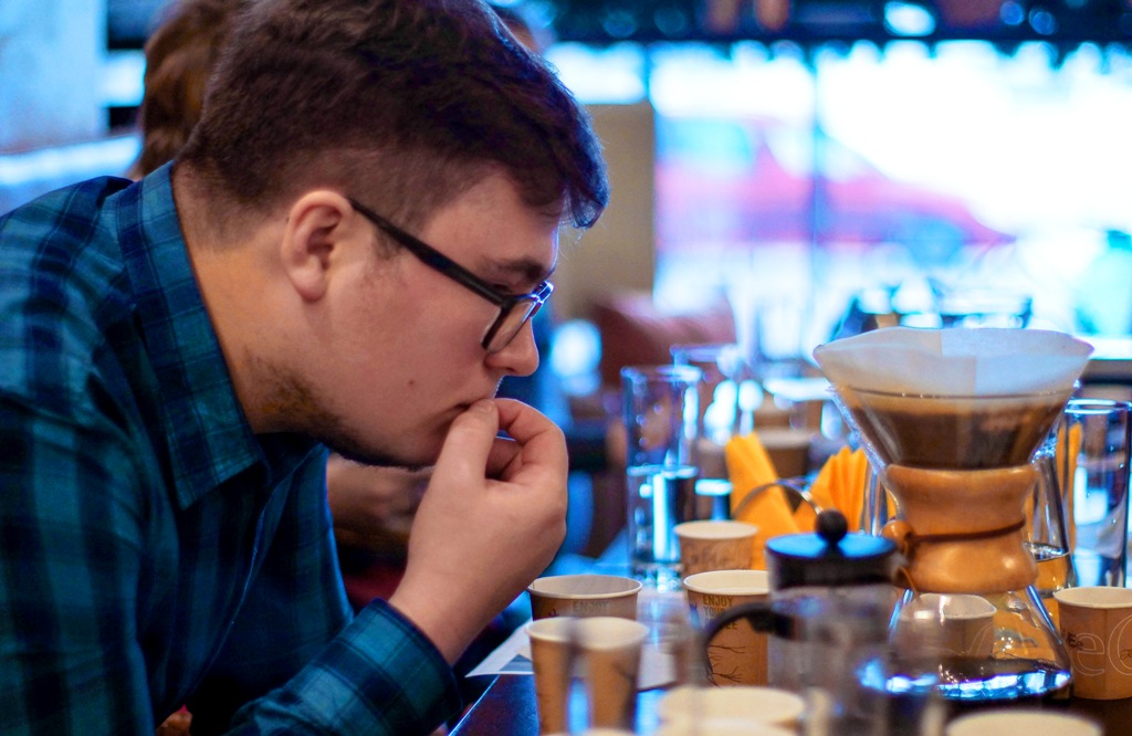 В воскресный полдень кафе было полно ценителей настоящего кофе. Каждый из них пришёл поучаствовать в каппинге, а заодно получить заряд бодрости и отличного настроения. Каппинг — это дегустация кофе, в ходе которой определяются характеристики его вкуса и запаха. Но первый взгляд кажется всё просто, но на деле нам пришлось пройти несколько этапов, чтобы познать кофе.