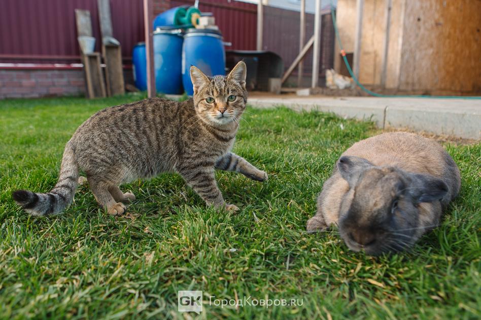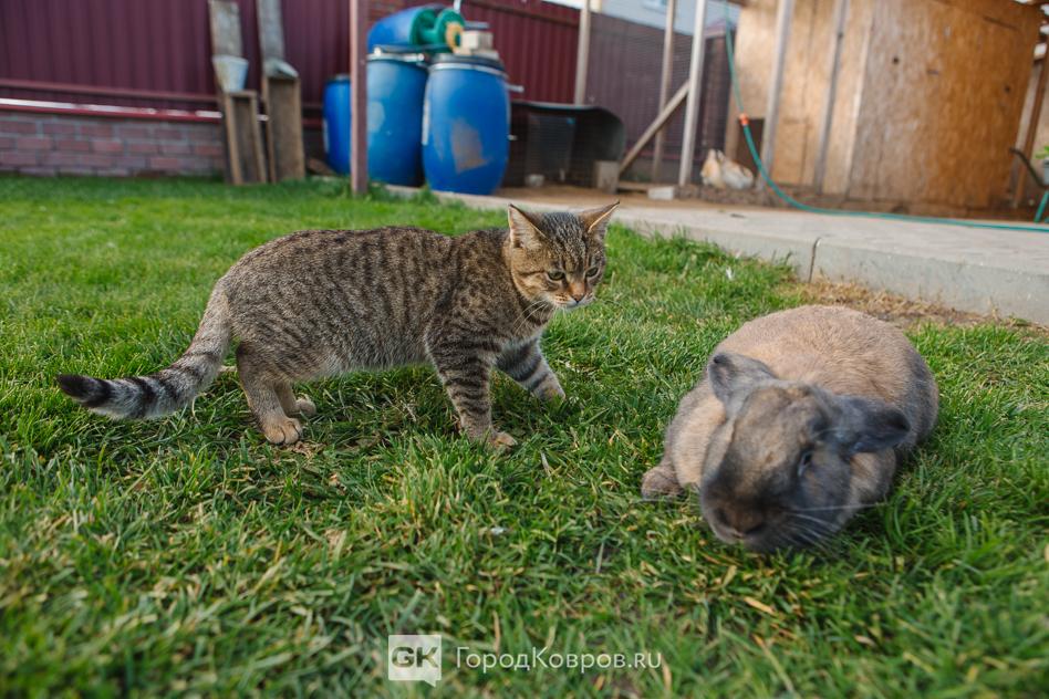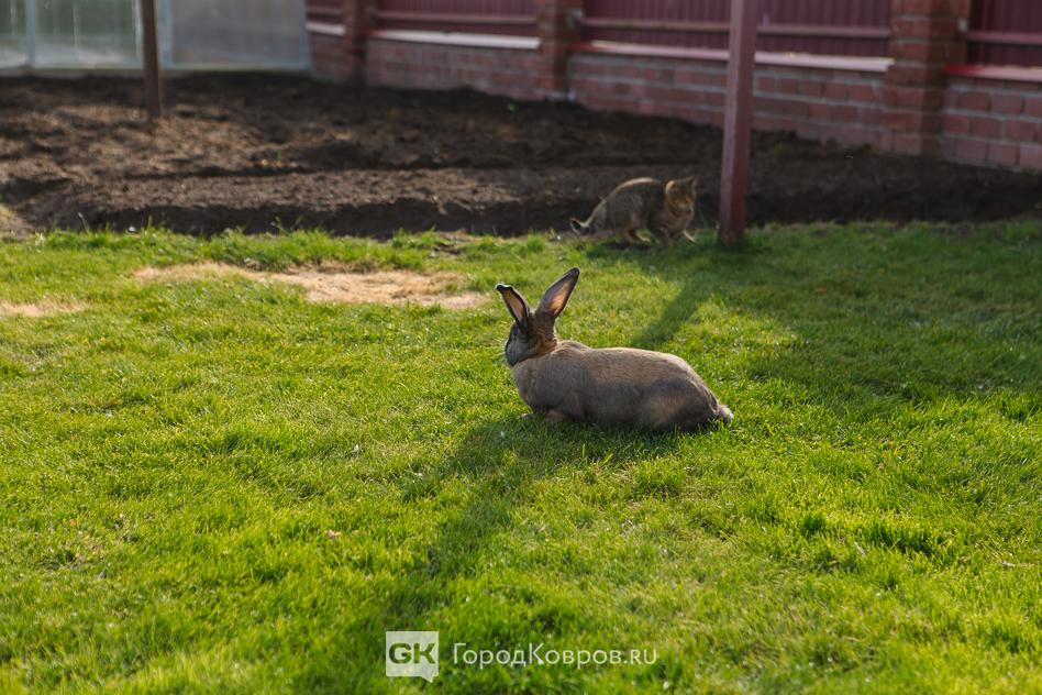 Думаю, что именно по этой причине попытки уточнить, как зовут кроликов, остались без ответа… Имя есть только у кошки Нюши. Она свободно разгуливает по участку, периодически задирая кроликов и гоняя кур. Нюша — это источник эндорфинов, остальные животные — проект.